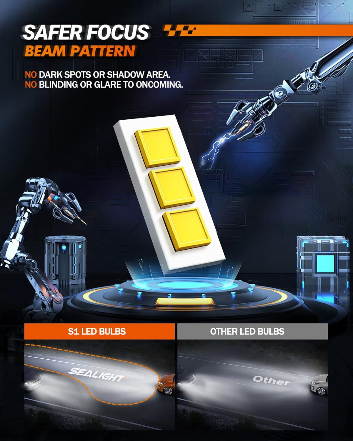 - 3 Mins Easy to Install: SEALIGHT S1 H11 9005 bulbs is perfect 1:1 design. Perfectly fit into your sockets without any modification. Installation can be finished in 3 minutes