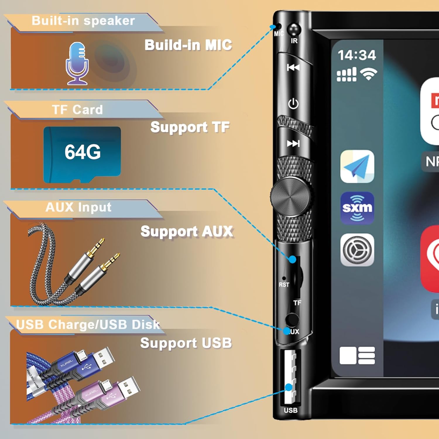- Wireless Apple CarPlay/Android Auto – Our double din car stereo seamlessly connect your iPhone or Android device via wireless or wired CarPlay & Android Auto for hands-free calls, voice control, GPS navigation, and music streaming.