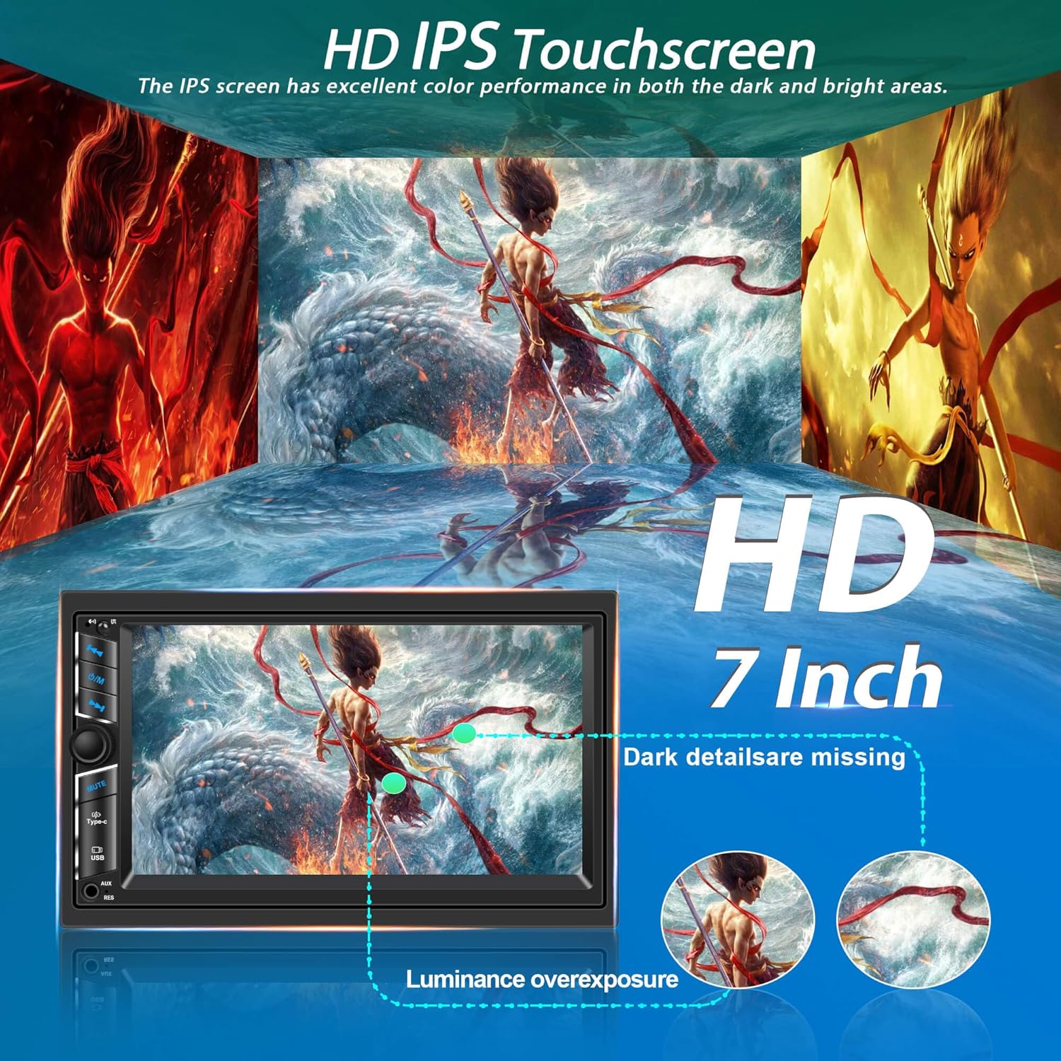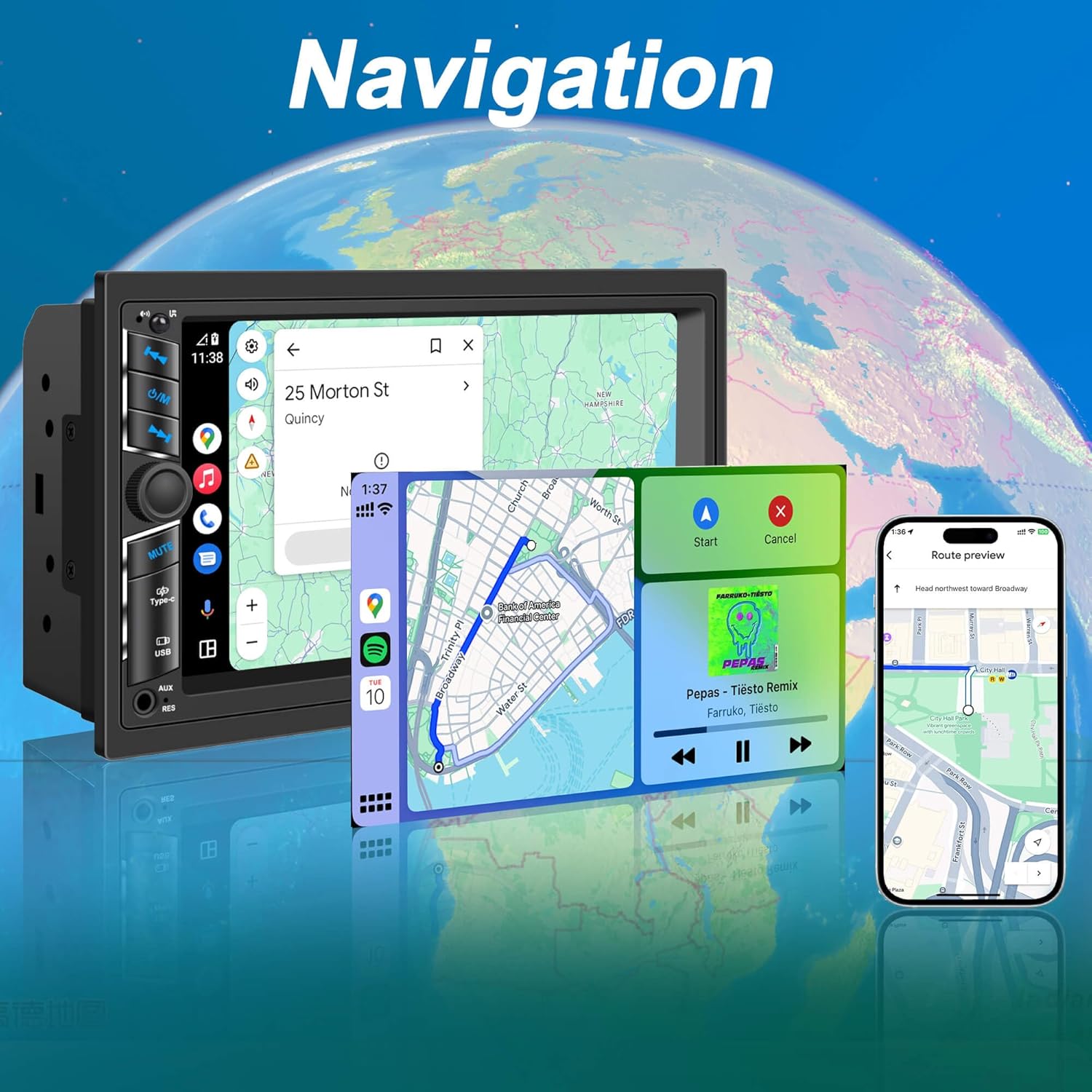 7 in Double DIN Car Stereo Radio with Wireless Apple CarPlay, Car Audio Receivers with Android Auto, 7" IPS Touchscreen, Car Stereo with Bluetooth, HD Backup Camera, FM Receiver, GPS,180W Audio Output