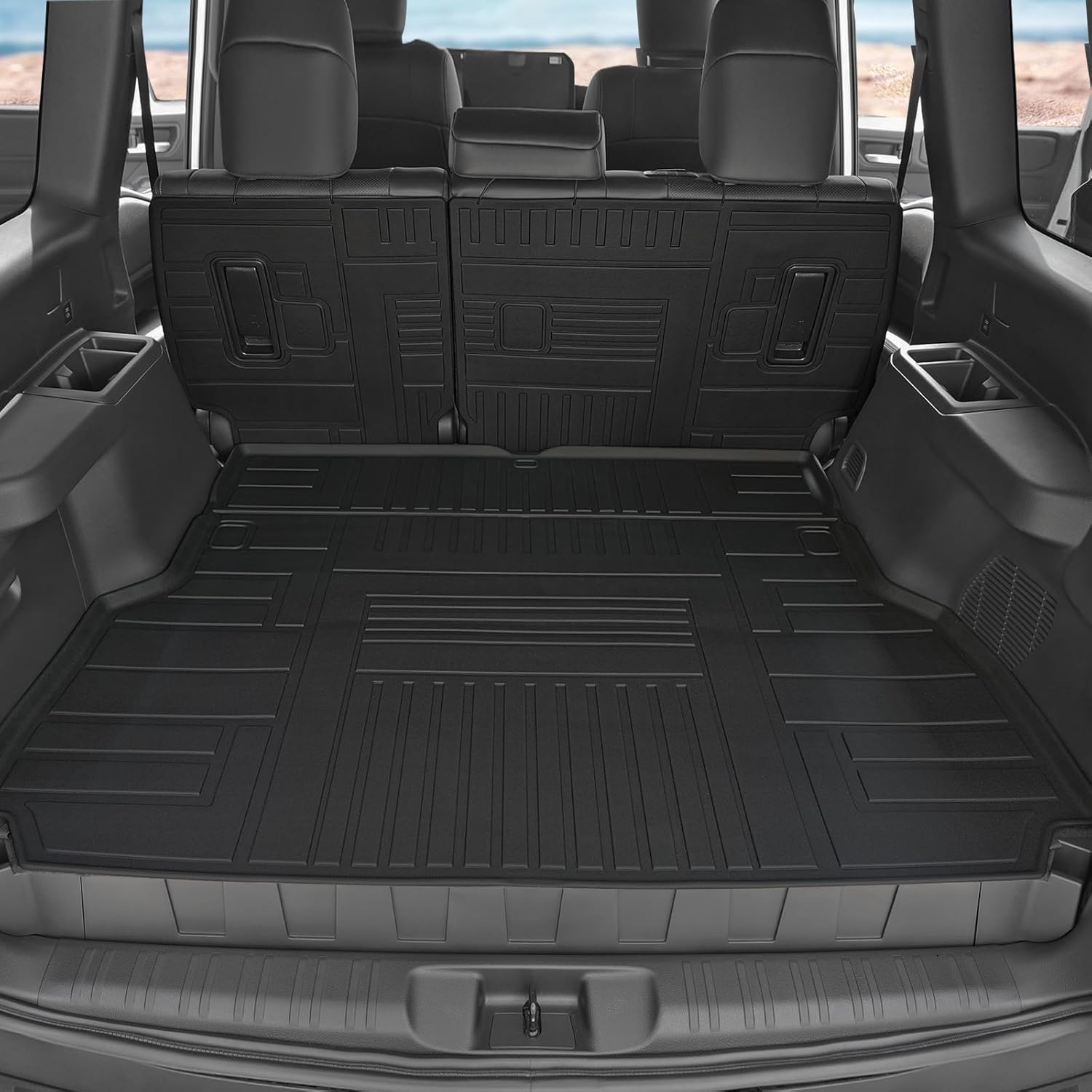 - Custom Fitment: Precisely designed with 3D laser scanning technology for 2024 2025 Toyota Land Cruiser Prado (5 passenger seating). Includes 1st & 2nd row floor mats, cargo liner, seat back protectors and 4PCS door sill guards – 30% more components than standard sets