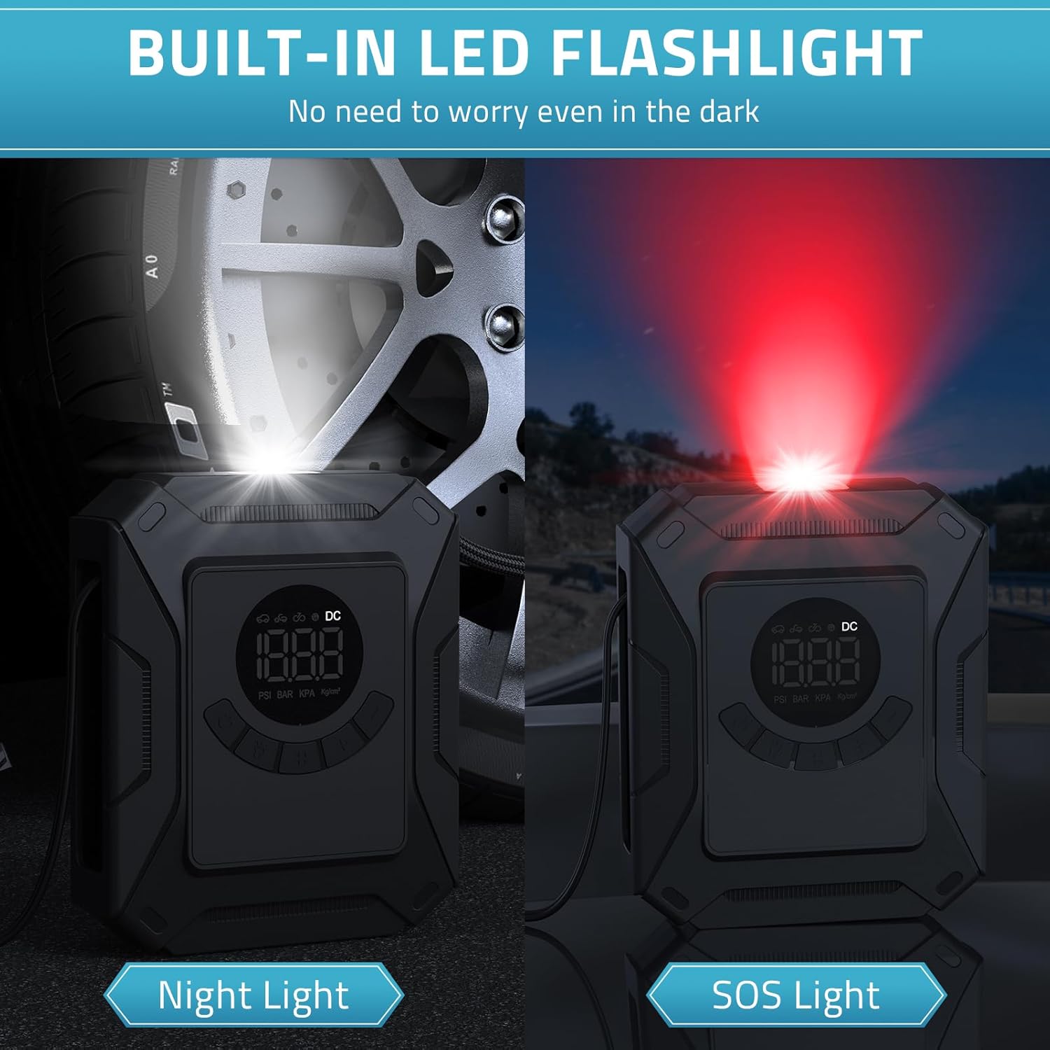 PAULINN Tire Inflator Air Compressor 12V DC Portable Air Pump 150 PSI for Car Tires, Auto Tire Pump with Digital Pressure Gauge, Auto Shutoff & LED Light for Cars, Motorcycles, Bikes & Balls, Black