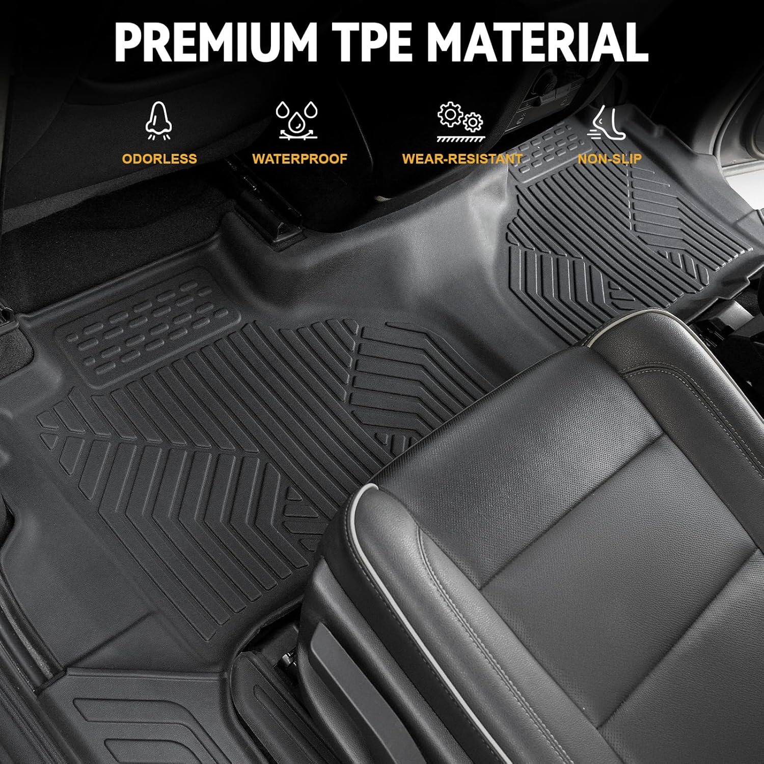 - All-weather TPE Material: 100% odorless, BPA Free and providing complete safety for your family while minimizing environmental impact. These flexible car mats full set feature water-resistant performance backed by marine-grade durability that withstands heavy daily use