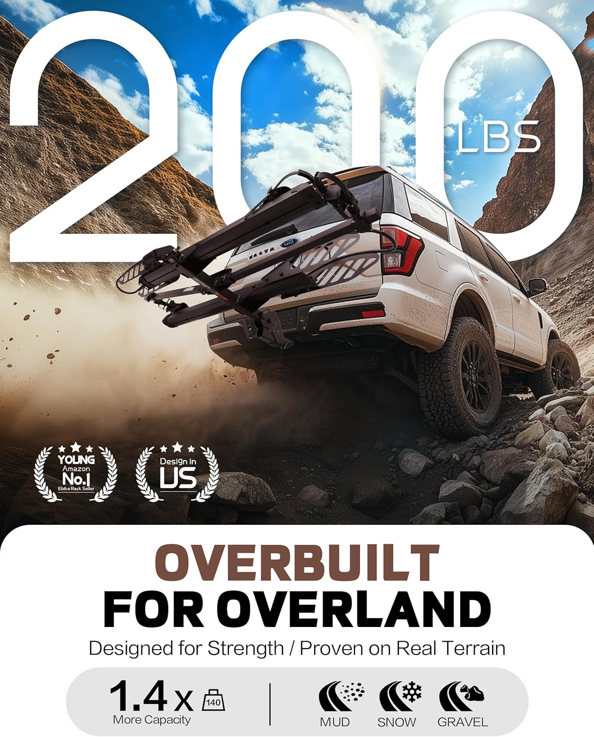 - Enhanced Compatibility & Stability: Our updated 2-inch rack now includes a V-shaped front wheel cradle, accommodating a variety of tire sizes. The vertical rod's connecting block features a semi-enclosed design. With its sturdy bolt system and shock-absorbing threads, this hitch rack ensures unparalleled stability on any terrain.