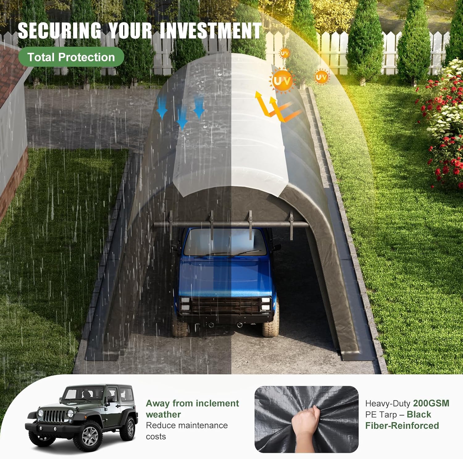 - Unrivaled Strength & Weather Protection: 💪 Tired of flimsy carports that fail in harsh weather? ⛈️ Our 12x20 heavy-duty carport boasts a reinforced steel frame with 6 top horizontal and 10 base vertical crossbeams, ensuring superior stability and wind resistance. The heavy-duty 200G/㎡ triple-layer PE cover shrugs off freezing rain, hail, and even hurricanes! 💨