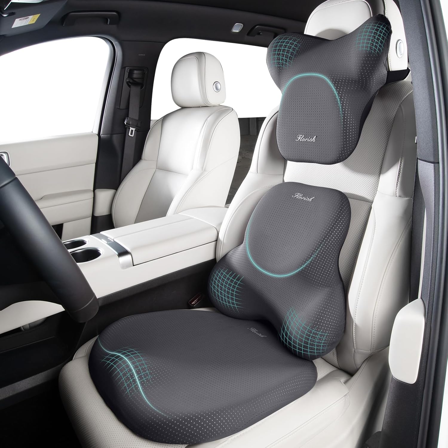 FLORICH Car Seat Cushion and Lumbar Support Pillow for Office Chair Car, Neck Headrest Pillow, Ergonomic Memory Foam, Pressure-Relieving Back Support for Car, Office Chair & Wheelchair – Gray