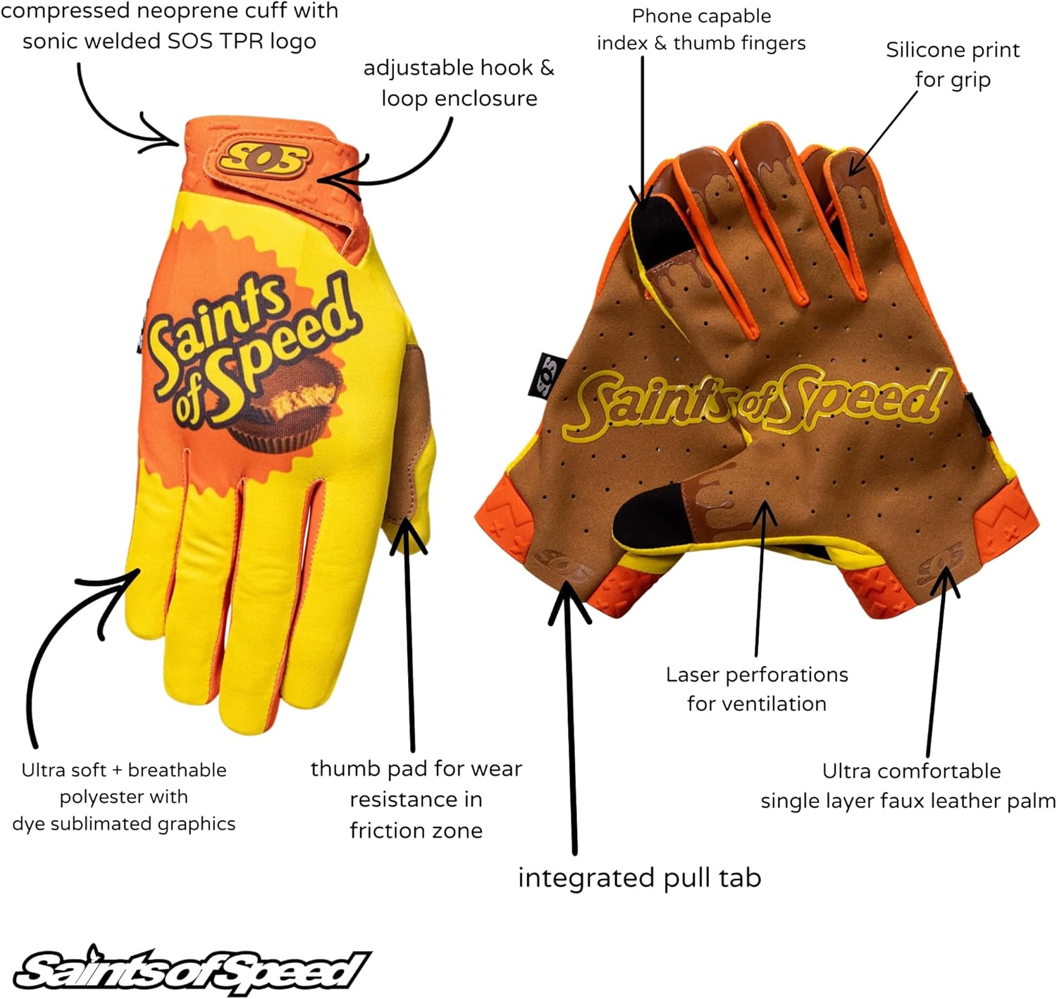 Saints of Speed Dirt Bike Gloves – Motocross, Mountain Bike, Motorcycle, BMX, Jetski, Sim, Karting, Airsoft, Paintball, Driving & Racing Bike Gloves + Phone & Touch Screen Capable
