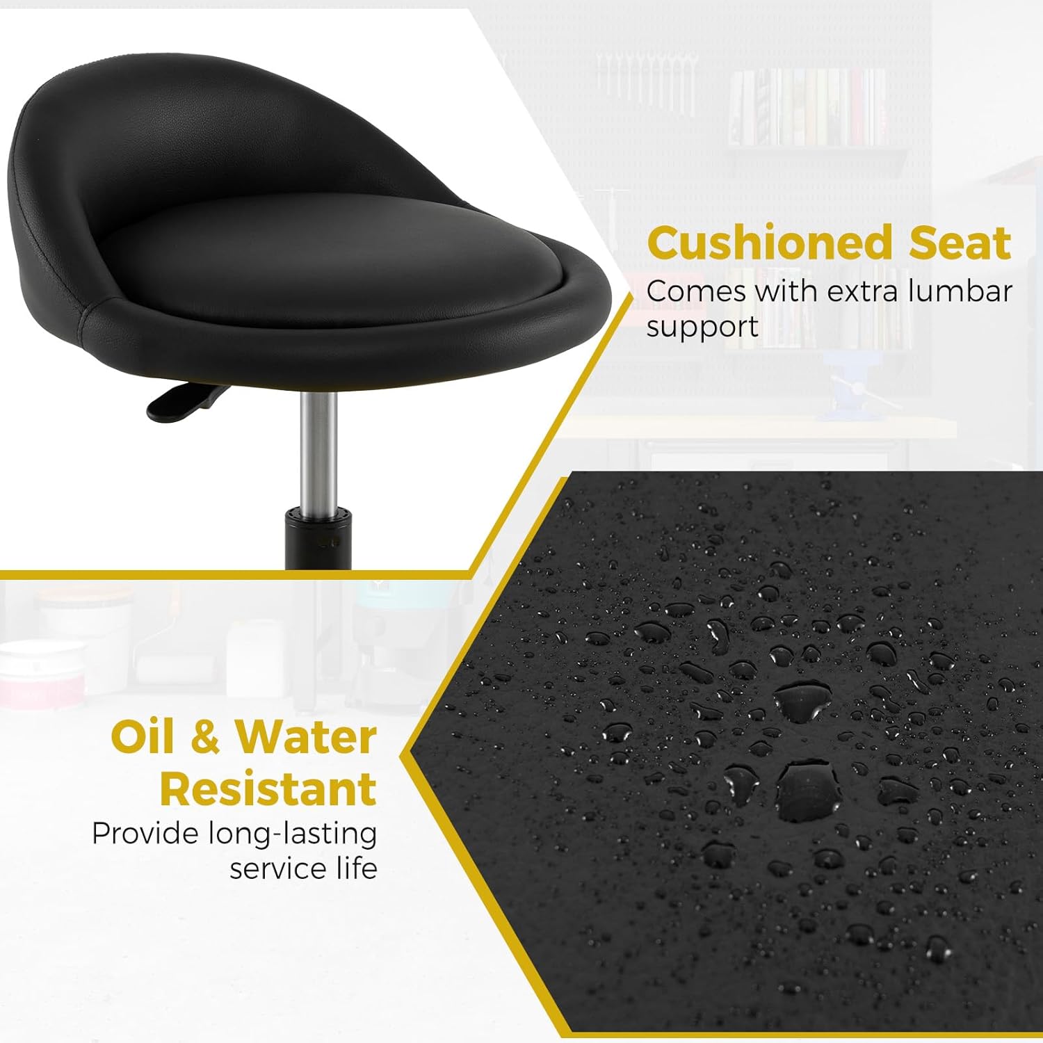 - 【 Designed for Comfort 】 The seat of this shop stool is soft-padded and fitted with extra lumbar support for extended comfort. Plus, its seat fabric is resistant to oil and water, making it tough and easy to maintain.