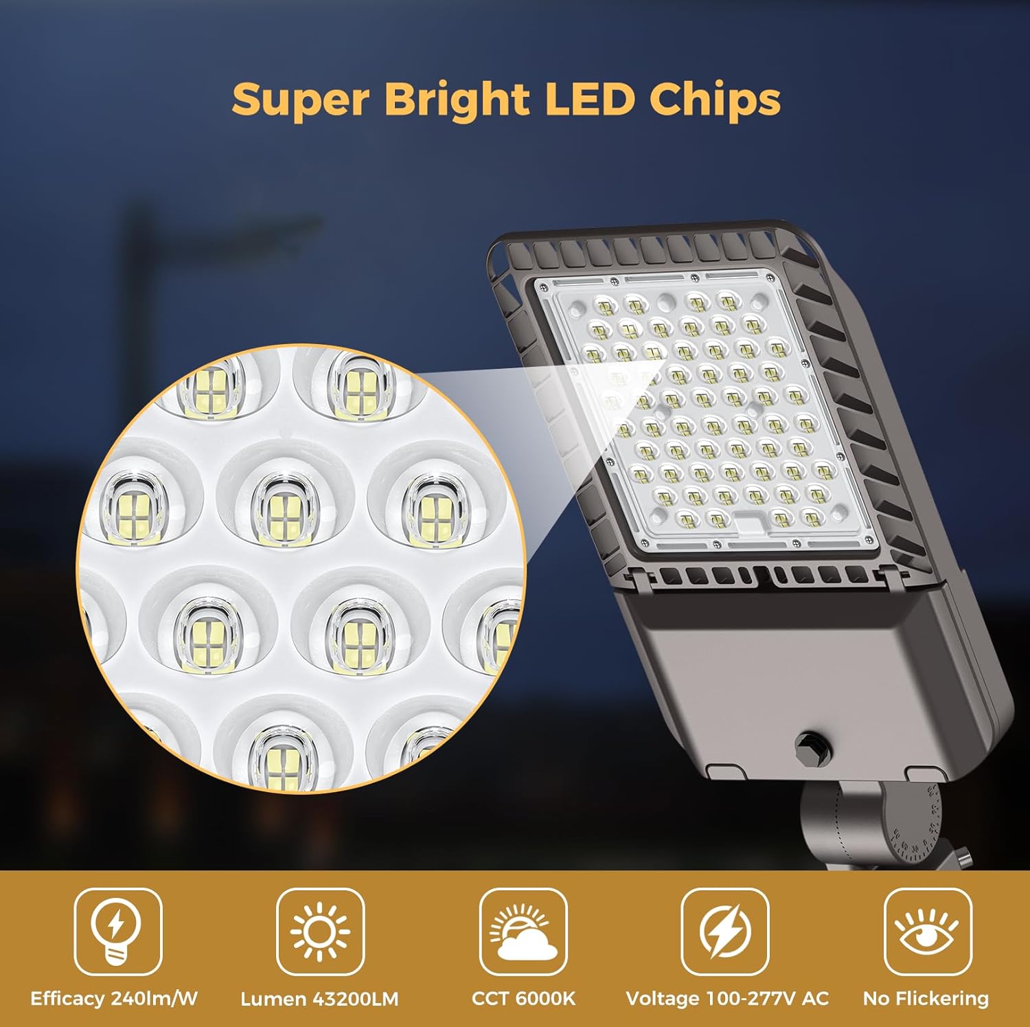 180W LED Parking lot Lights Commercial Oudoor Lighting Shoebox Light with Dusk to Dawn Photocell 32400Lm(180LM/W) 6000K IP65 Waterproof 100-277V for Driverway Parking Lot