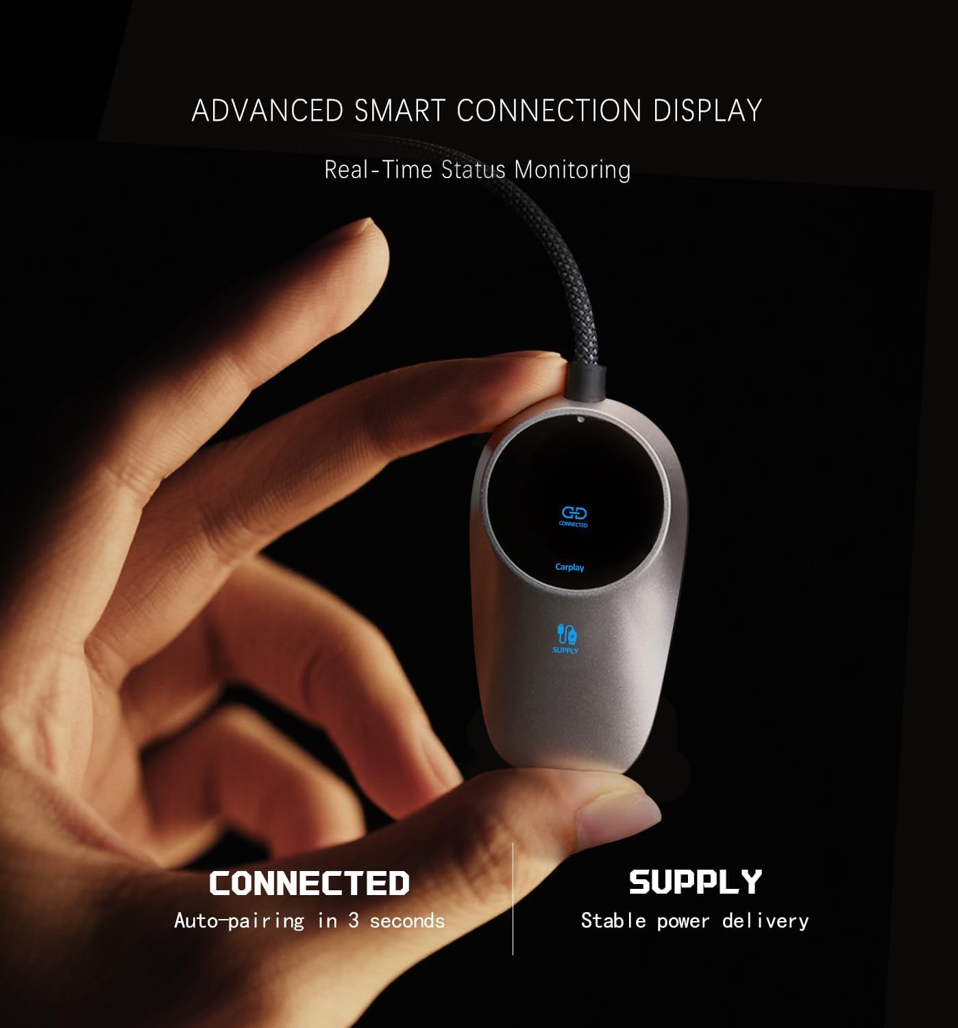- 【Unbreakable Connection】Experience zero dropouts, freezes, or delays with our ultra-stable CarPlay wireless adapter, keeping you seamlessly connected to road conditions for a safer journey. Our CarPlay with LED screen shows real-time connection and power status at a glance, ensuring flawless performance every drive. Stay informed, stay smooth, stay in control