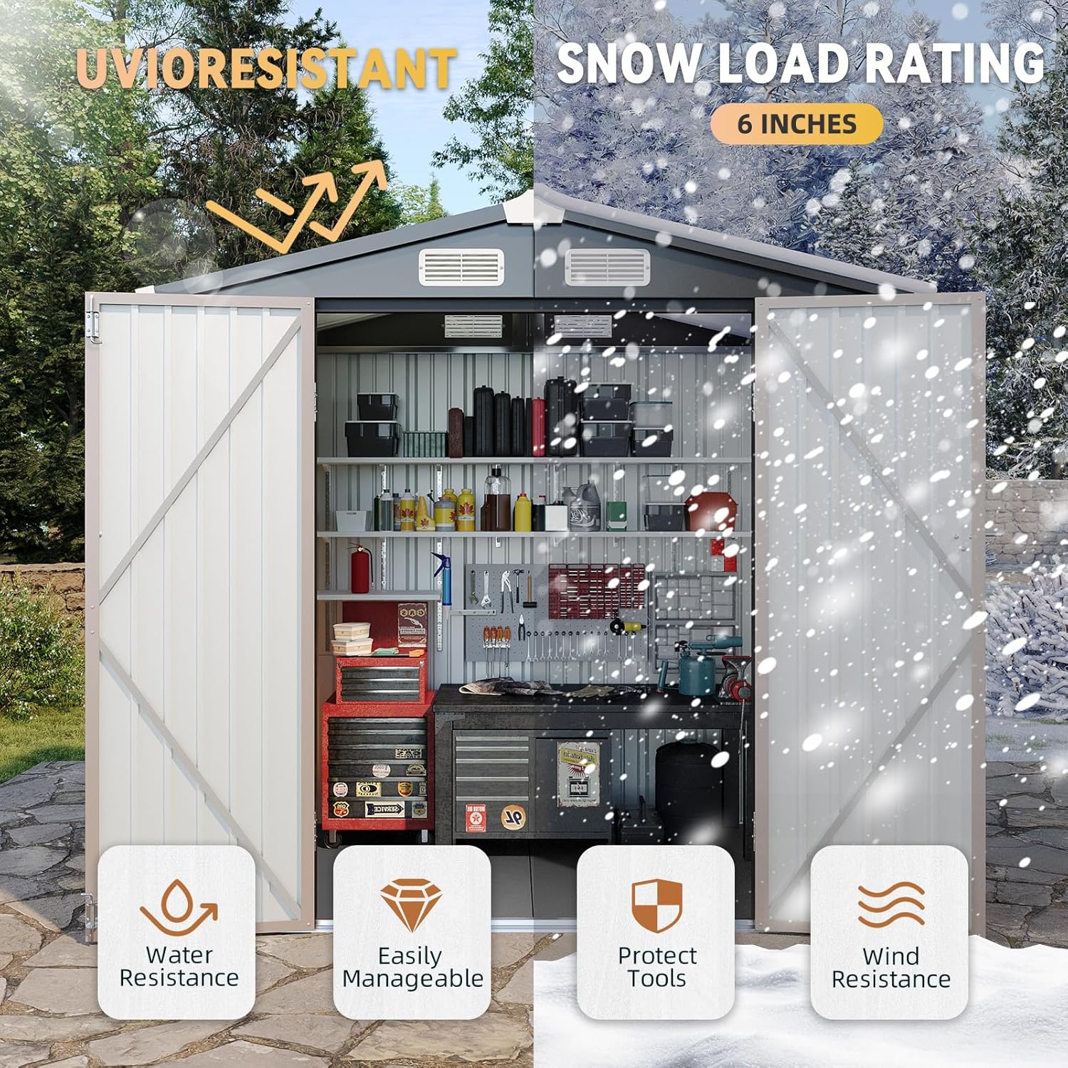 - Versatile Outdoor Storage Solution: The angled roof design not only increases its snow carrying capacity, but also greatly increases the capacity of the interior space. This provides a variety of storage options. Ideal as a bike shed, generator storage unit, or garden tool organizer. Fits seamlessly in backyards, patios, or driveways.