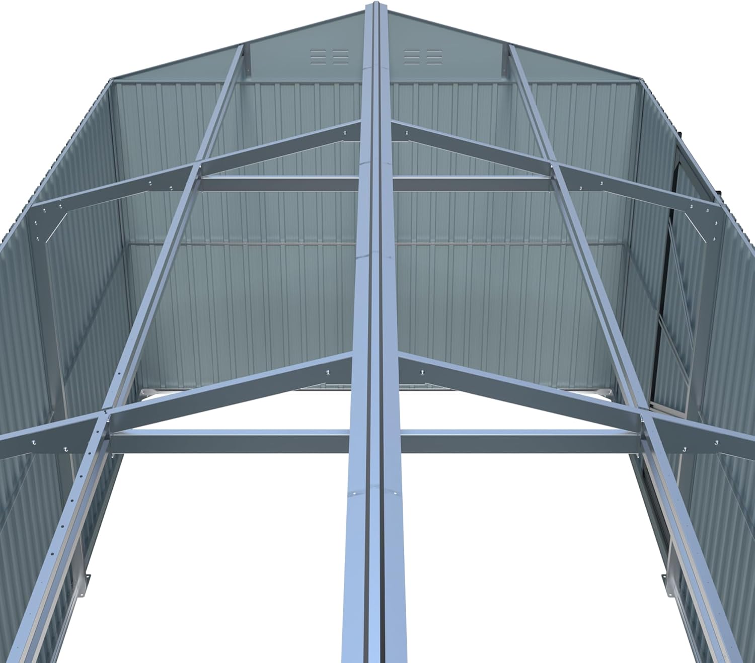 - Outdoor Storage Shed for Maximum Space Utilization: Our outdoor storage shed, featuring a generous 250 square feet of floor space, metal shed heavy duty reinforced metal frame with 20lbs/sqft Snow Load capacity and 50M/ph Wind Resistance, ideal for trucks, cars, large tools, and lawn equipment, it ensures you never run out of storage again.