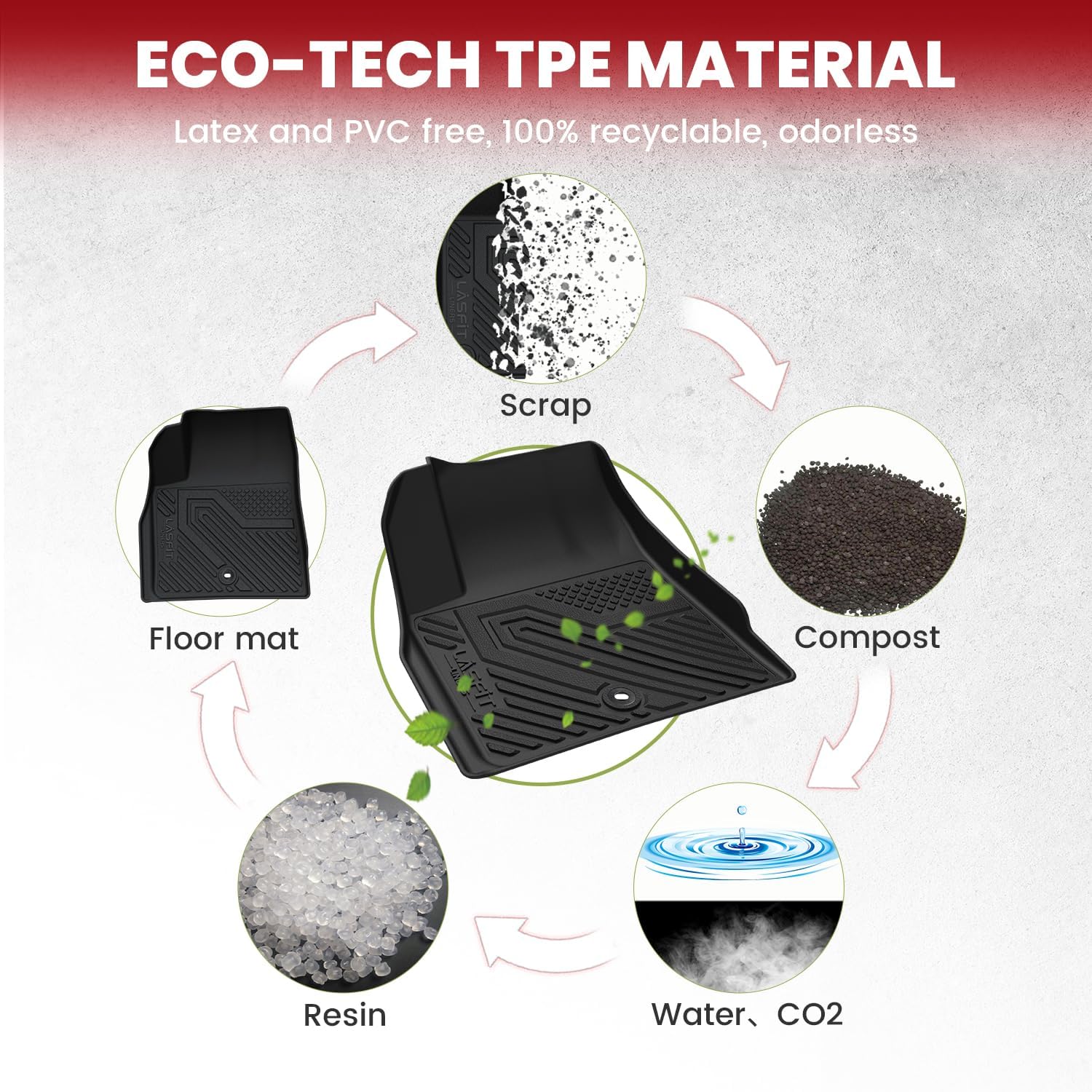 - ăDurable & Safe MaterialăLASFIT all weather floor mats for Chevrolet Traverse & GMC Acadia & Buick Enclave & Saturn Outlook use elastic TPE (Thermoplastic Elastomer), no foul odor is produced even at high temperatures, soft touch and exquisite finish. The LASFIT floor mats for cars are skid-proof and recyclable.