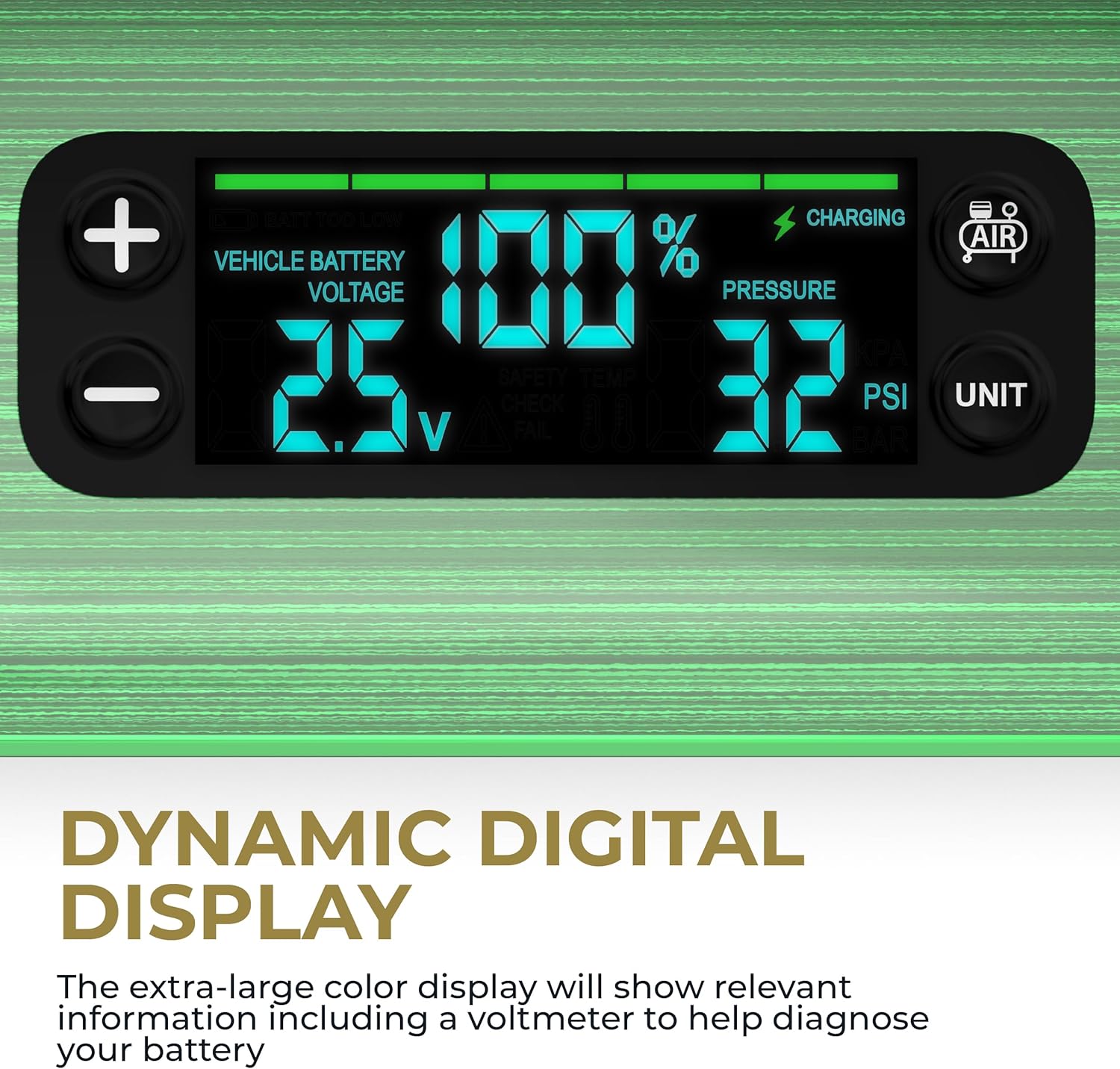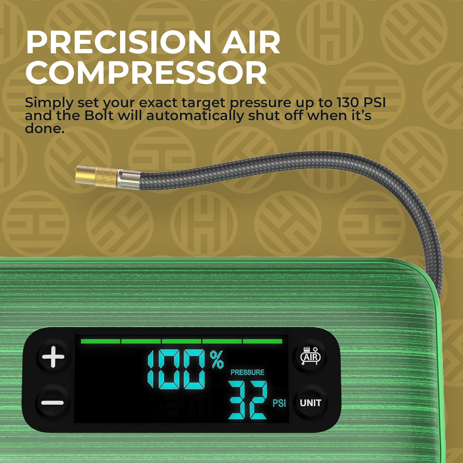 HALO Bolt Ultimate 3 Portable Car Battery Jump Starter | 130 PSI Air Compressor, 55.5Wh USB Power Bank, Large Display, Emergency Floodlight & Charger, Jumps Cars SUVs & Trucks, Inflates Tires — Green