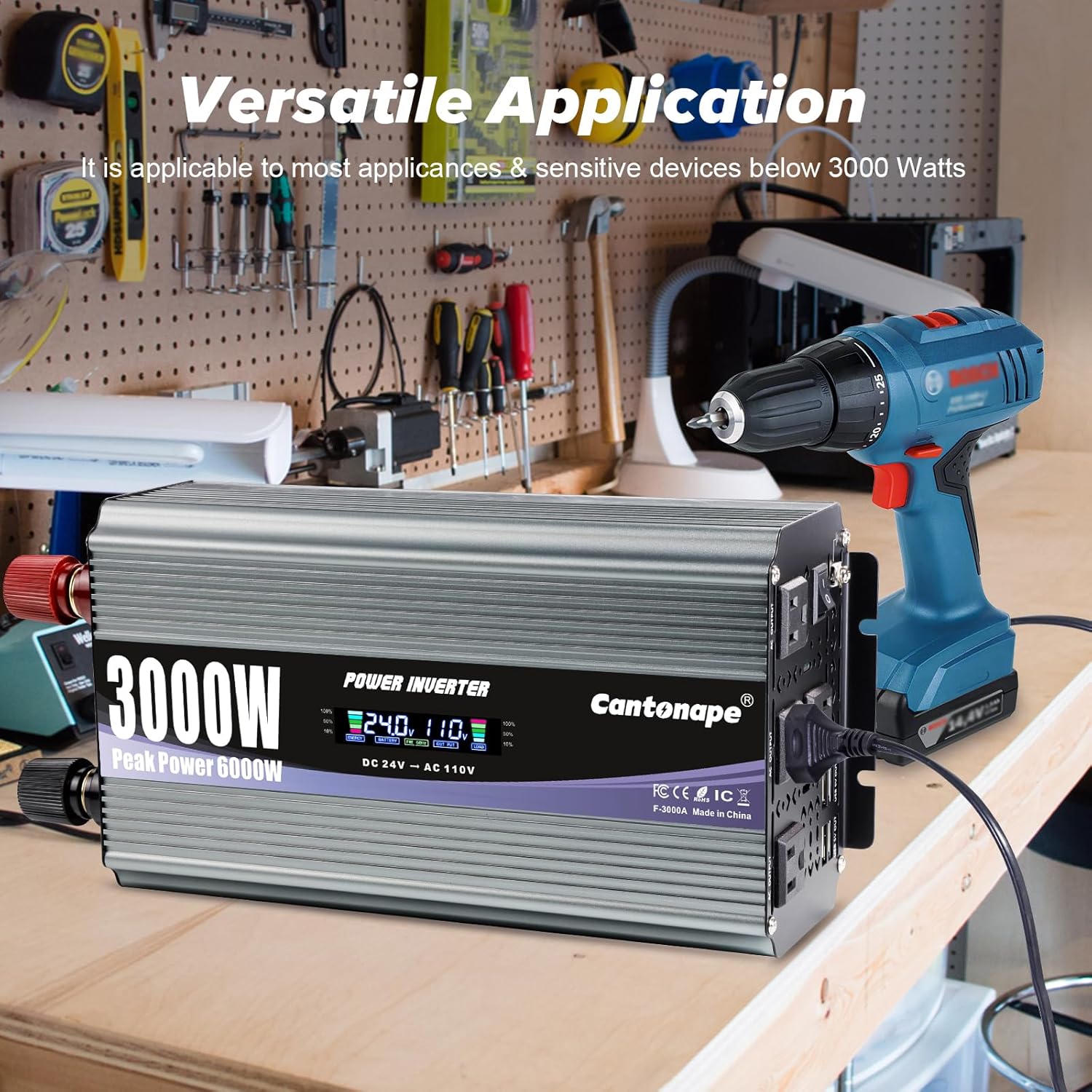 - Powerful Performance: Converts DC 24V to AC 110V/120V with a continuous output of 3000 watts, peaking at 6000W. Equipped with 4 AC output interfaces, 4 USB Ports and earth wire.