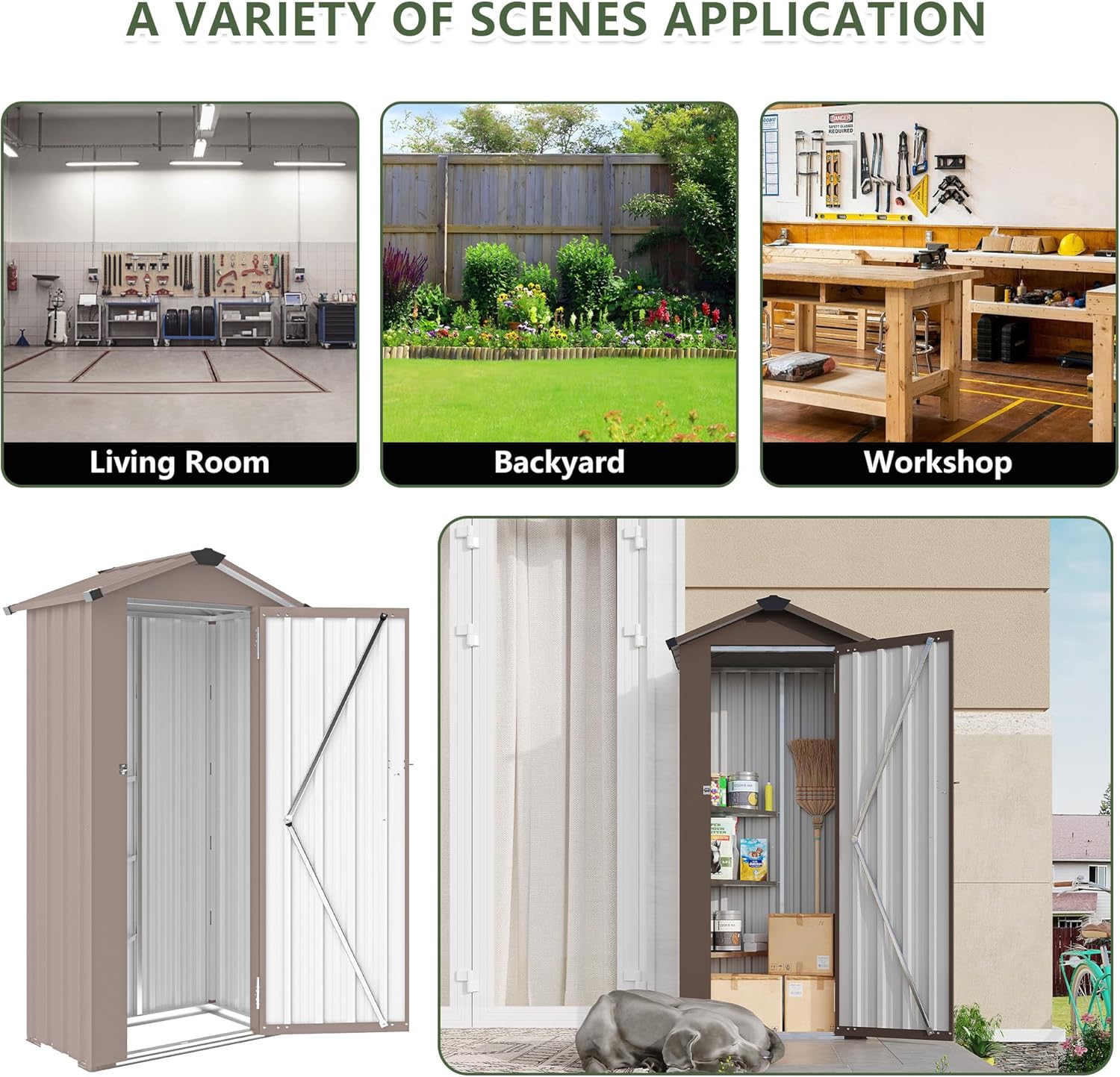 2.5x1.4 FT Outdoor Storage Shed, Small Metal Garden Shed with Adjustable Shelves, Mini Outside Tool Sheds with Lockable Hinged Door, Waterproof Outdoor Storage Cabinet for Backyard, Patio, Lawn, Brown