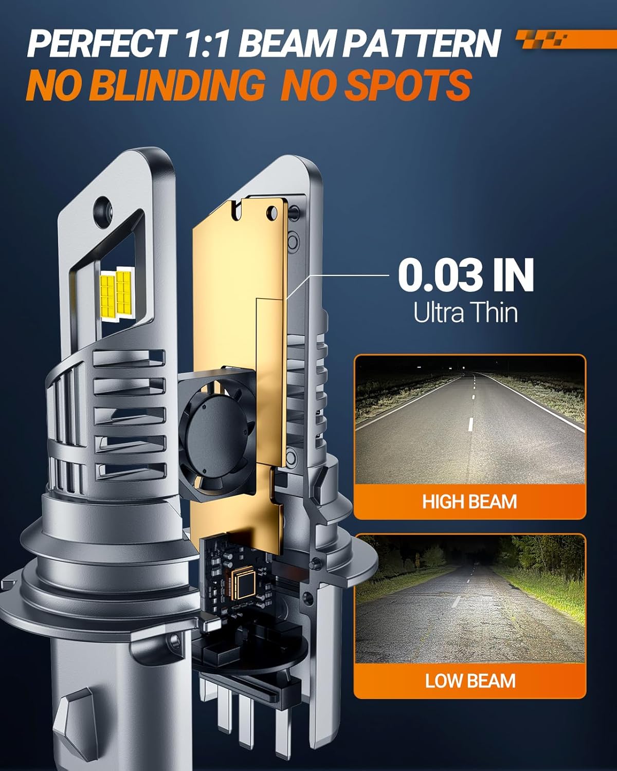 - ăPefect 1:1 LightingăThe 0.03-inch ultra-thin copper substrate addresses issues like flickering and dimming. The focused lighting minimizes disturbance to oncoming traffic, enhancing safety on the road
