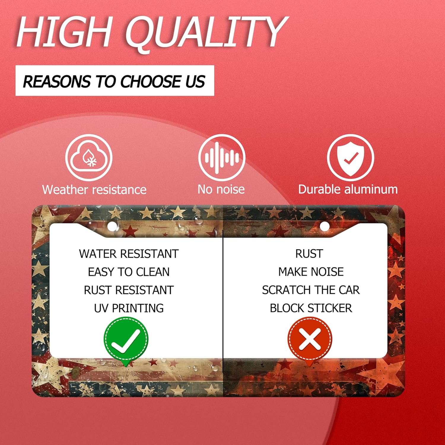 Retro American Flag License Plate Frame USA Flag Patriotic License Plate Holder Funny Stainless Steel Accessories Cars Decor with 2 Holes and Screws Fits Standard Us Ca Vehicles 12.2 X 6 Inch