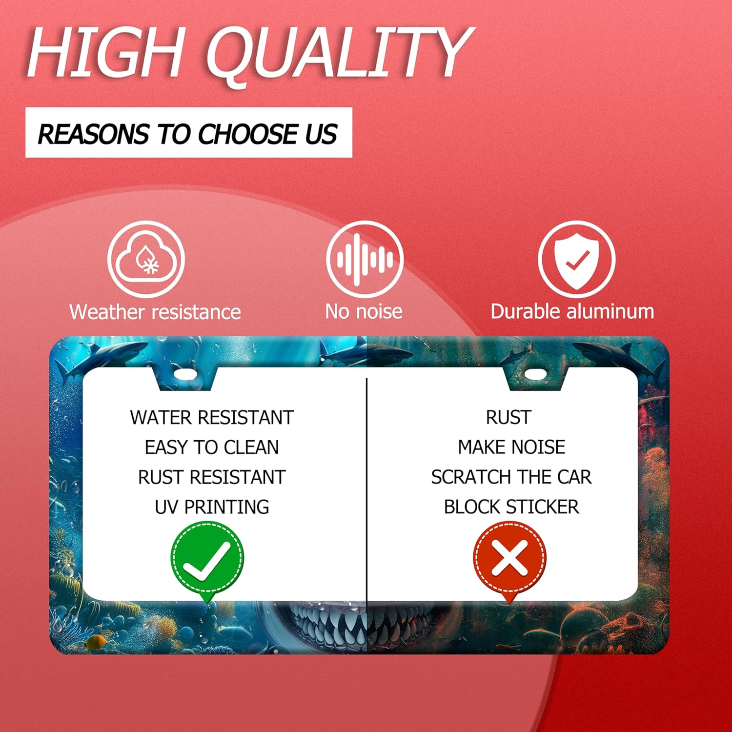 Shark License Plate Frame Ocean Marine Fish License Plate Holder Funny Stainless Steel Accessories Cars Decor with 2 Holes and Screws Fits Standard Us Ca Vehicles License Plate Frames 12.2 X 6 Inch