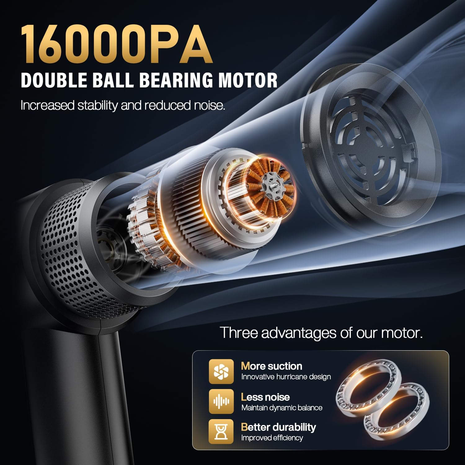 Handheld Car Vacuum Cleaner, 16000PA Car Vacuum Portable Cordless,4 in 1 Air Duster and Vacuum Cleaner with LED Light,Dual Filters, High Power Handheld Used for Home, Pet, Office