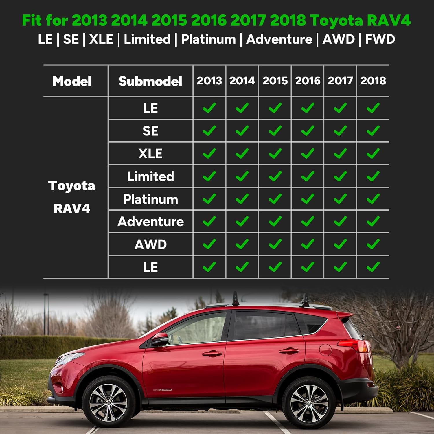 - Custom Fit: Floor mats fit for Toyota RAV4 2018 2017 2016 2015 2014 2013(Not for Hybrid or Prime).Includes 2 front floor mats & 1 rear floor mat & 1 cargo liner. If creases are caused by transportation, please put the mats in the sun for a while or blow them with a hair dryeries