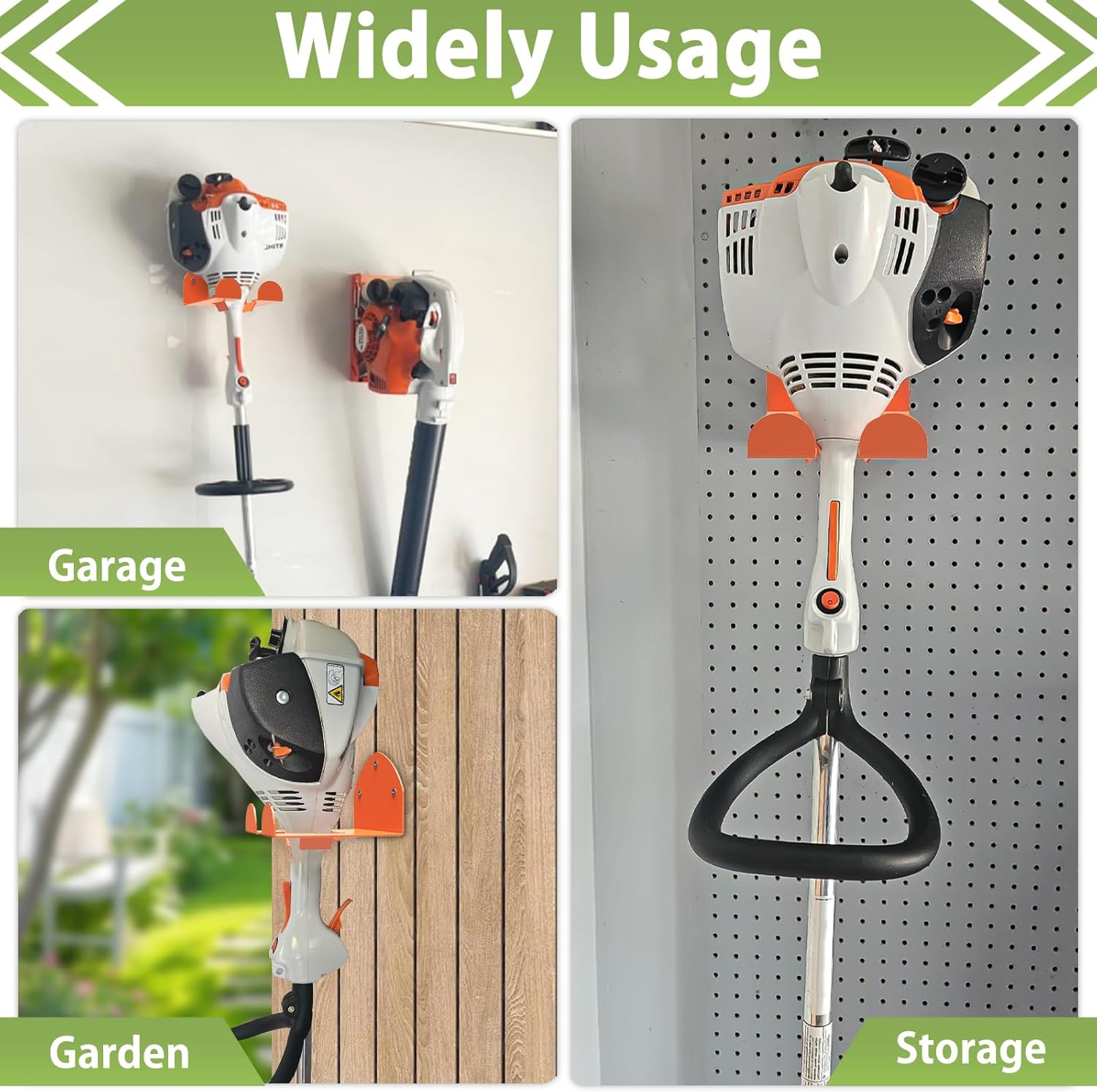 - 【High Quality】The Weed Wacker Hanger made of premium steel, which is sturdy and durable, and the orange surface coating makes it water and rust proof, making it suitable for a long time. Smooth edges do not hurt your hands and tools