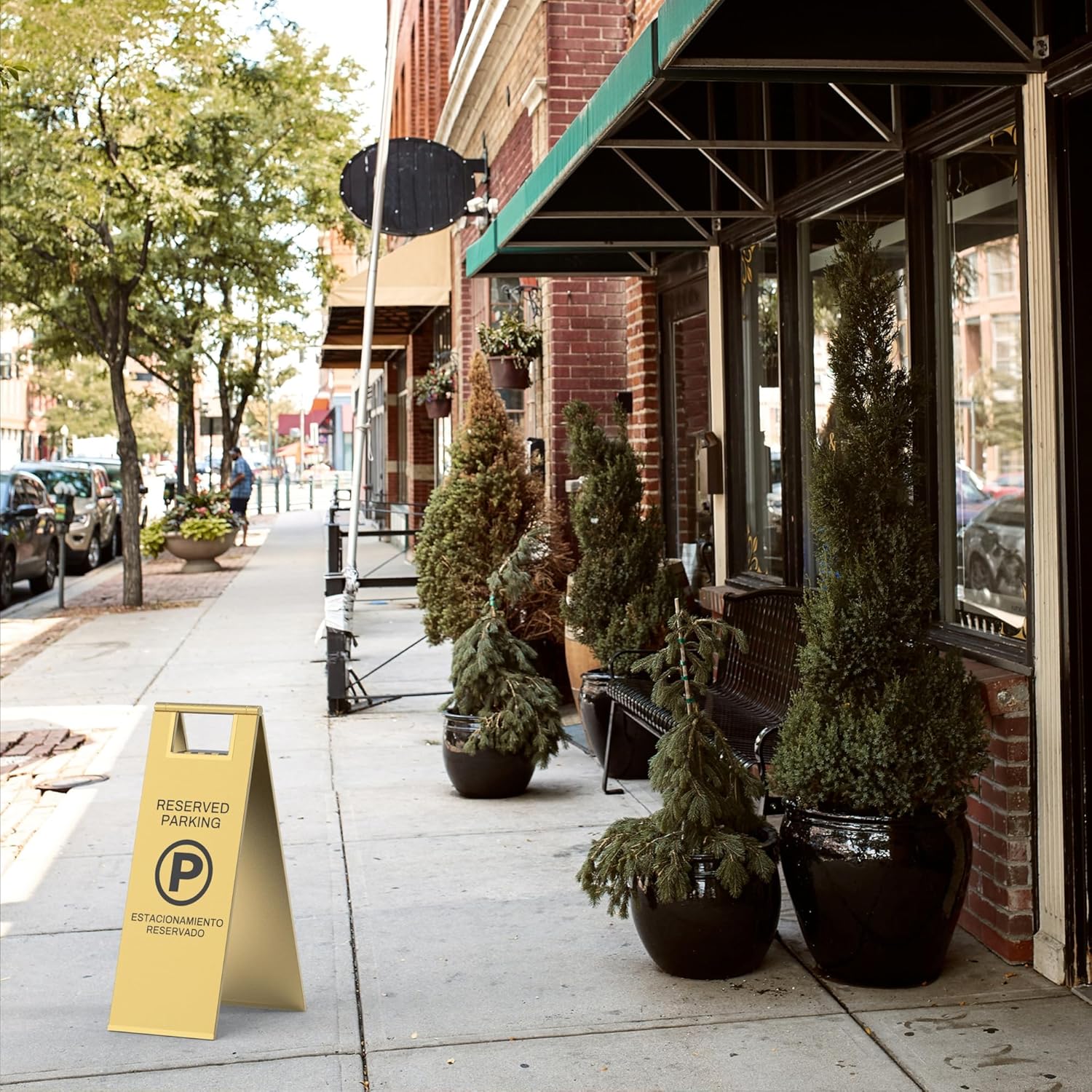 Reserved Parking Sign – Foldable Heavy Duty Plastic A-Frame with Bold “P” Symbol, Bilingual English & Spanish – 24" Tall Reserved Spot Marker for Storefront, Driveway, Garage – Gold