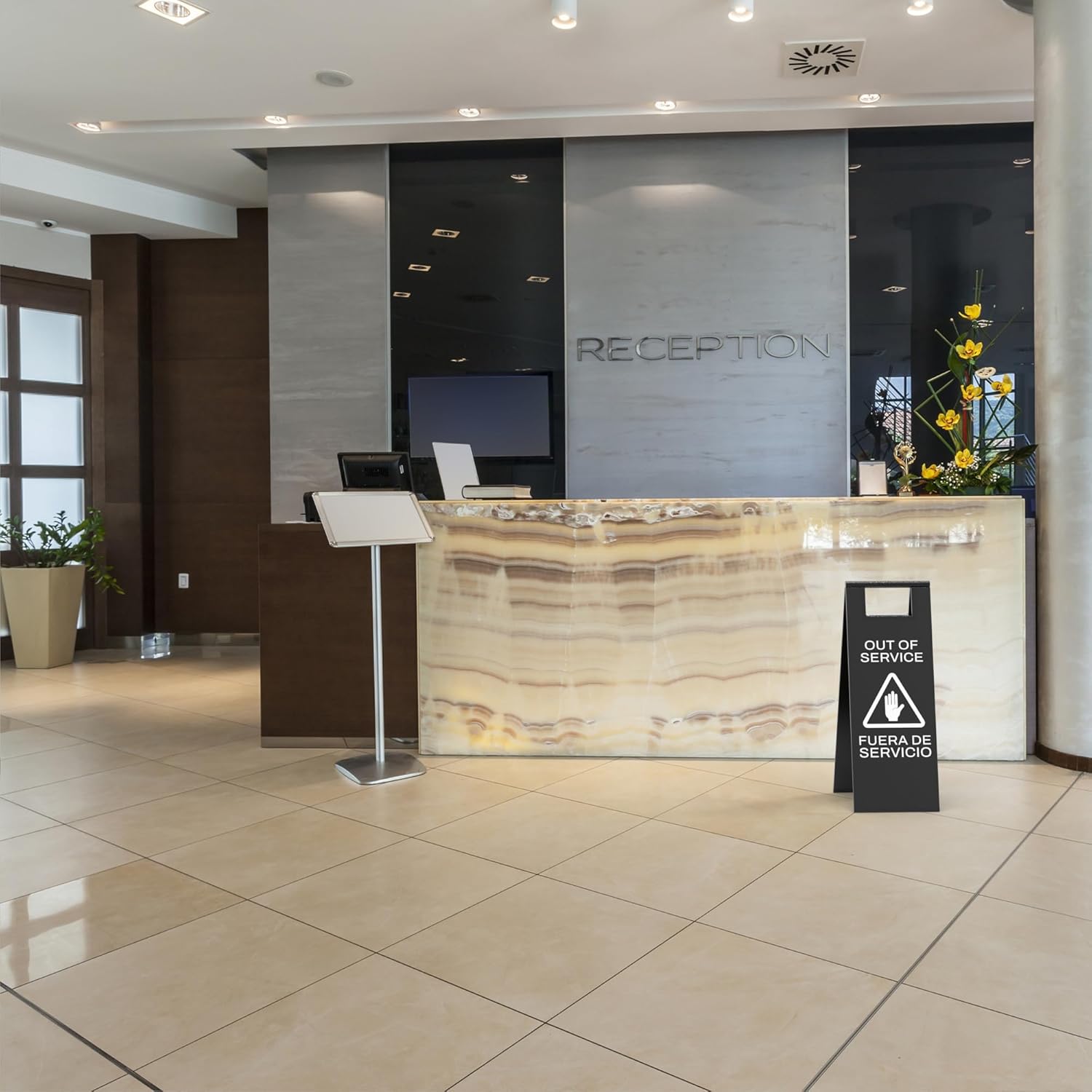 - Double-Sided Bilingual Warning – Boosts Safety Awareness Features clear “Out of Service” and “FUERA DE SERVICIO” text on both sides, along with a universal falling icon. Provides instant visual alerts to help prevent slip-and-fall incidents in multilingual environments