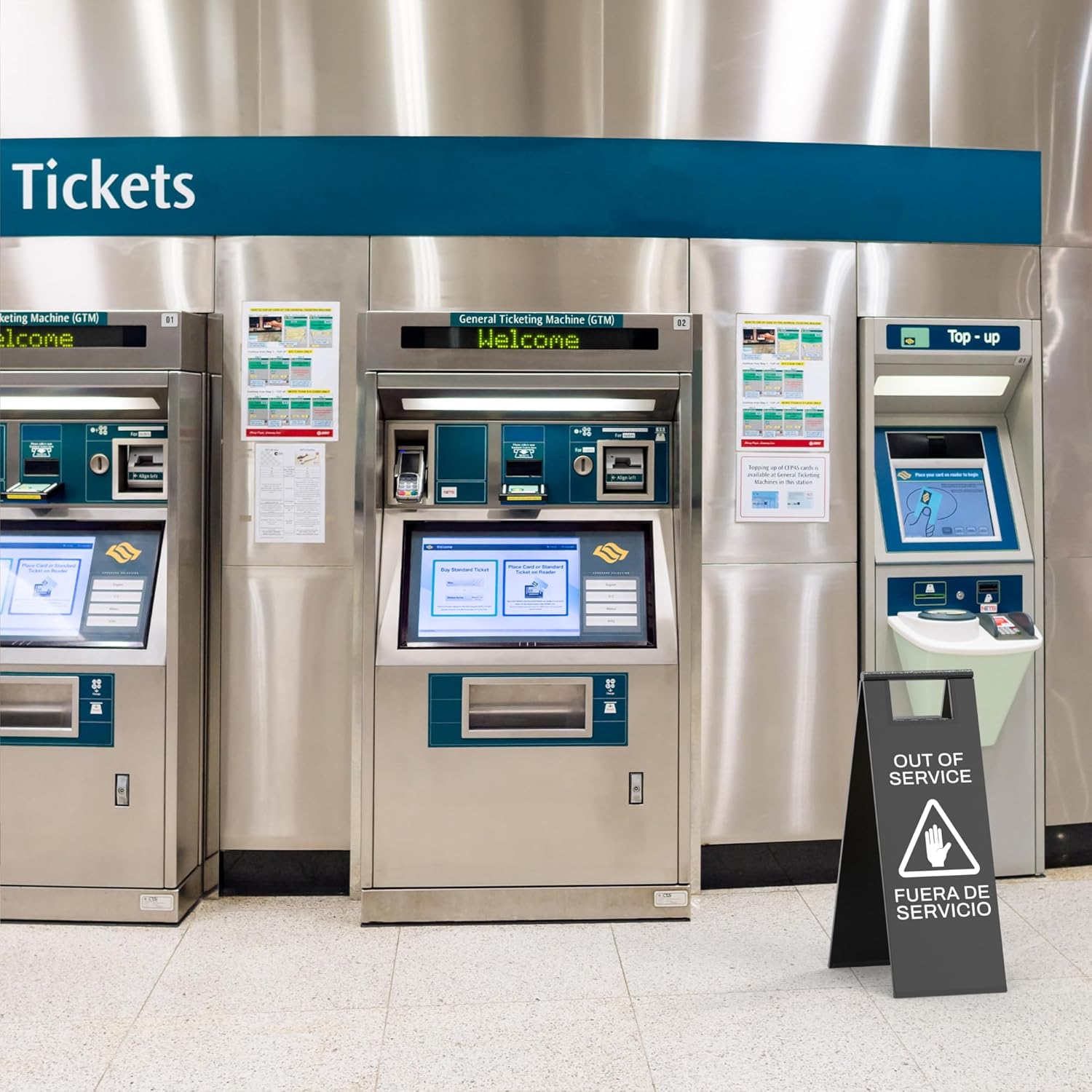 Stainless Steel Out of Service Sign Portable Foldable Sign 2-Pack (Black)