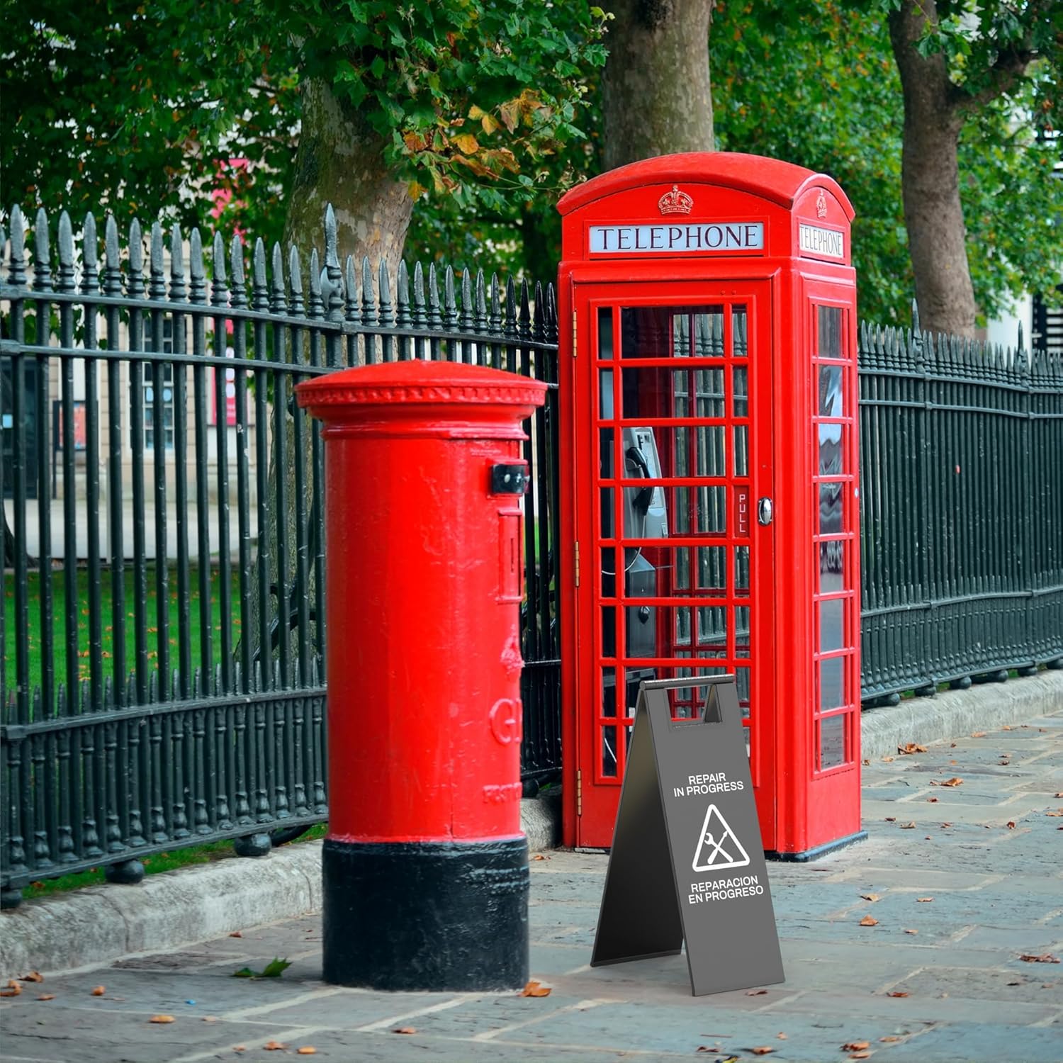 Stainless Steel Repair In Progress Sign Portable Foldable Sign 2-Pack (Black)