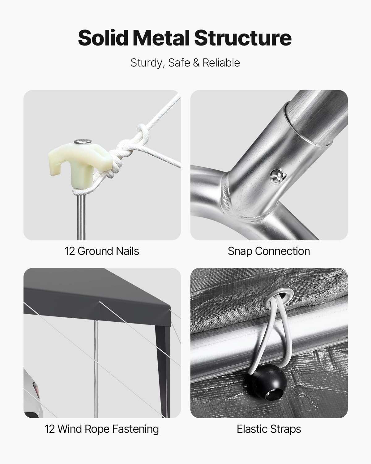 VEVOR Carport, 10 x 20 FT Outdoor Car Canopy, Potable Carport, Heavy Duty Galvanized Car Shelter, UV-Resistant & Water-Resistant, All-Season Protection, Storage Shed for Car Boat Motorcycle Grey