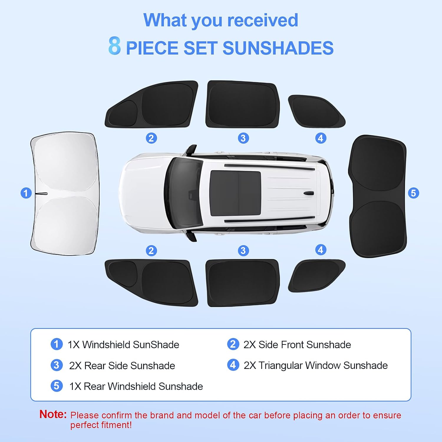 - 99% Sun Protection & Heat Reduction:Double-layer heat shield blocks 99% of harmful UV rays and reduces interior temperature by up to 40°F.Prevents "hot car" syndrome – no more burning steering wheels or suffocating heat when you enter.Say goodbye to scorching seats and steering wheels!