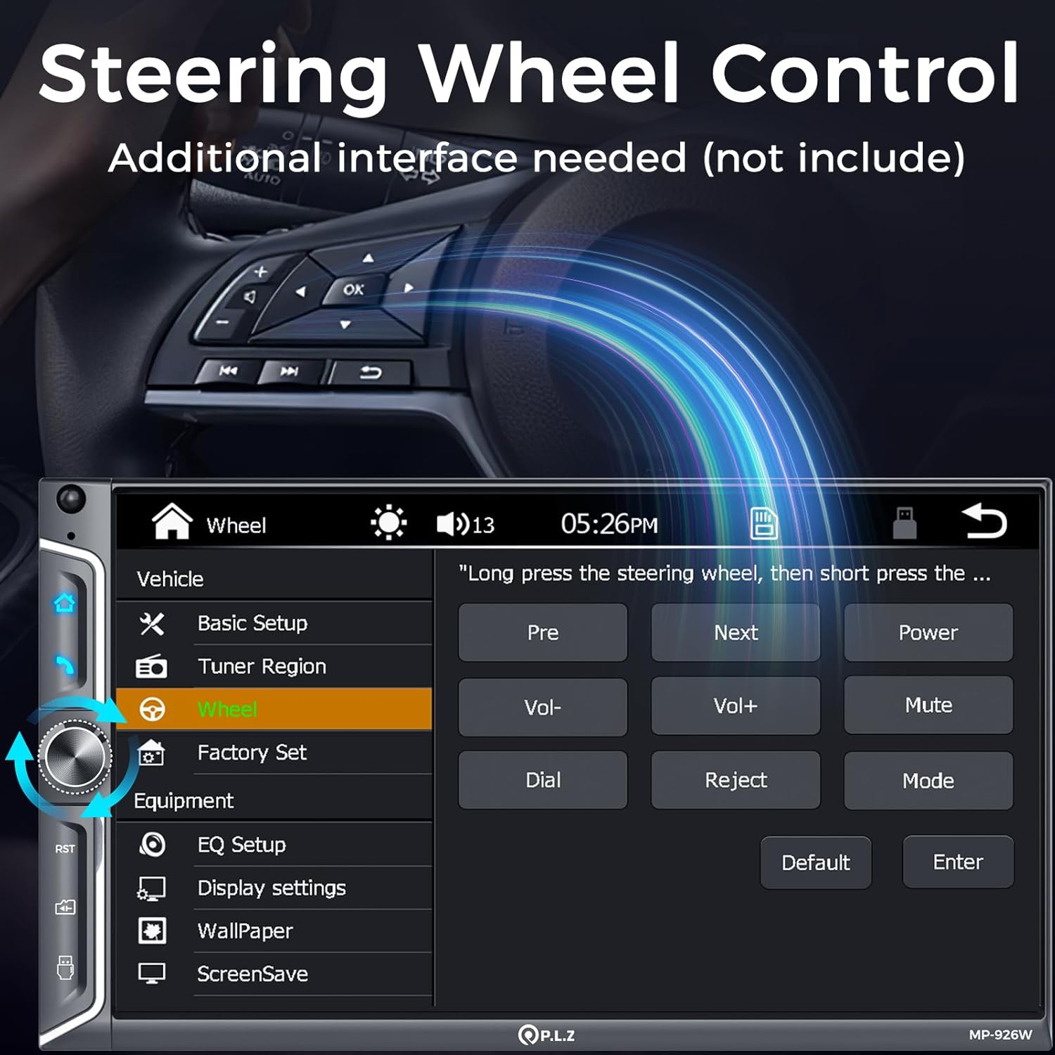 PLZ 7" QLED Wireless Double Din Car Stereo - Apple CarPlay & Android Auto, 240W 4.2CHN, 2 Subwoofers Outputs, SWC, Bluetooth, FM/AM Car Radio, Backup Camera