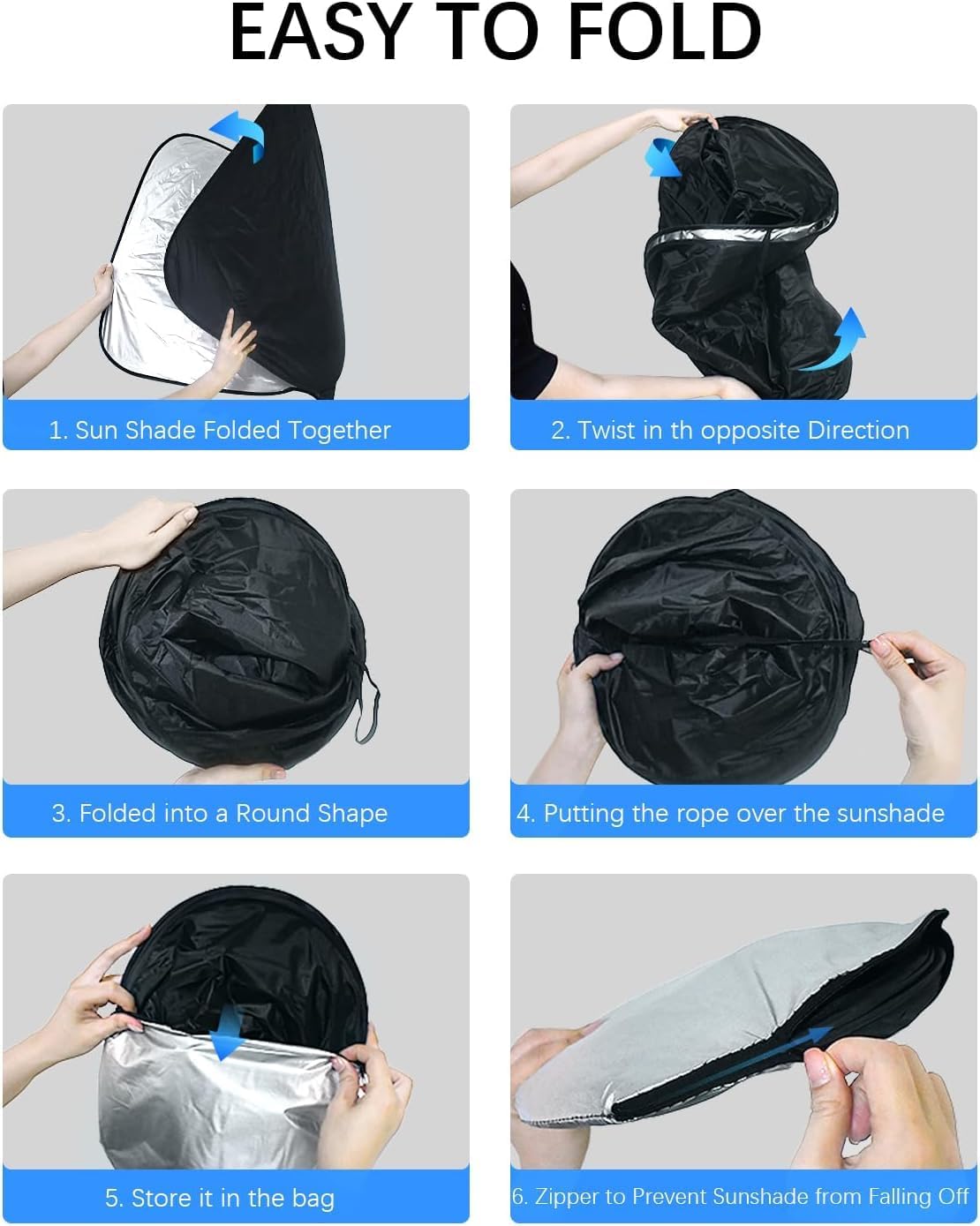 - Keep Your Car Cool: Foldable Sunshade blocks harmful UV rays and reduces heat build-up, keeping your car cool and comfortable on hot summer days.