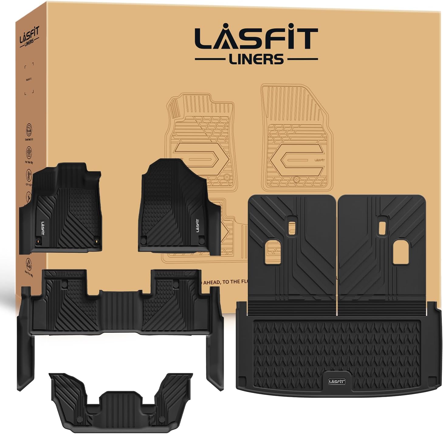 LASFIT Floor Mats & Trunk Mat & Backrest Mats for Acura Mdx 2022-2026 Cargo Mat All Weather TPE Mats Custom Fit Floor Liner for Mdx 1st & 2nd & 3rd Row Car Mats & Cargo Liner, Black, Easy to Clean