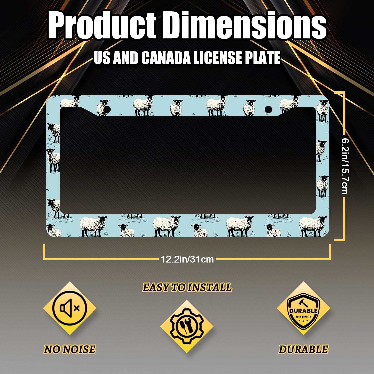 - Size: The size of the license plate frame is 12.3" x 6.3" , it fits all standard size US and Canada vehicle license plates.Fashion design frame fits perfectly on your car license plate.