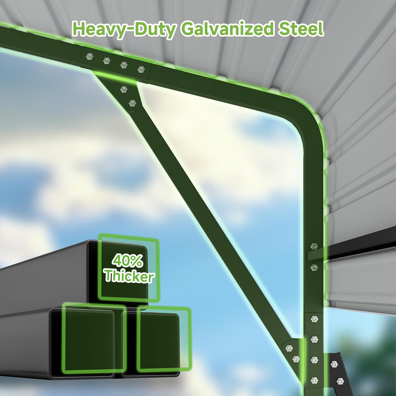 - Waterproof Construction: Galvanized steel sheets joined with premium waterproof tape create seamless protection. Reinforced with metal washers at every screw point, ensure complete rainwater blockage