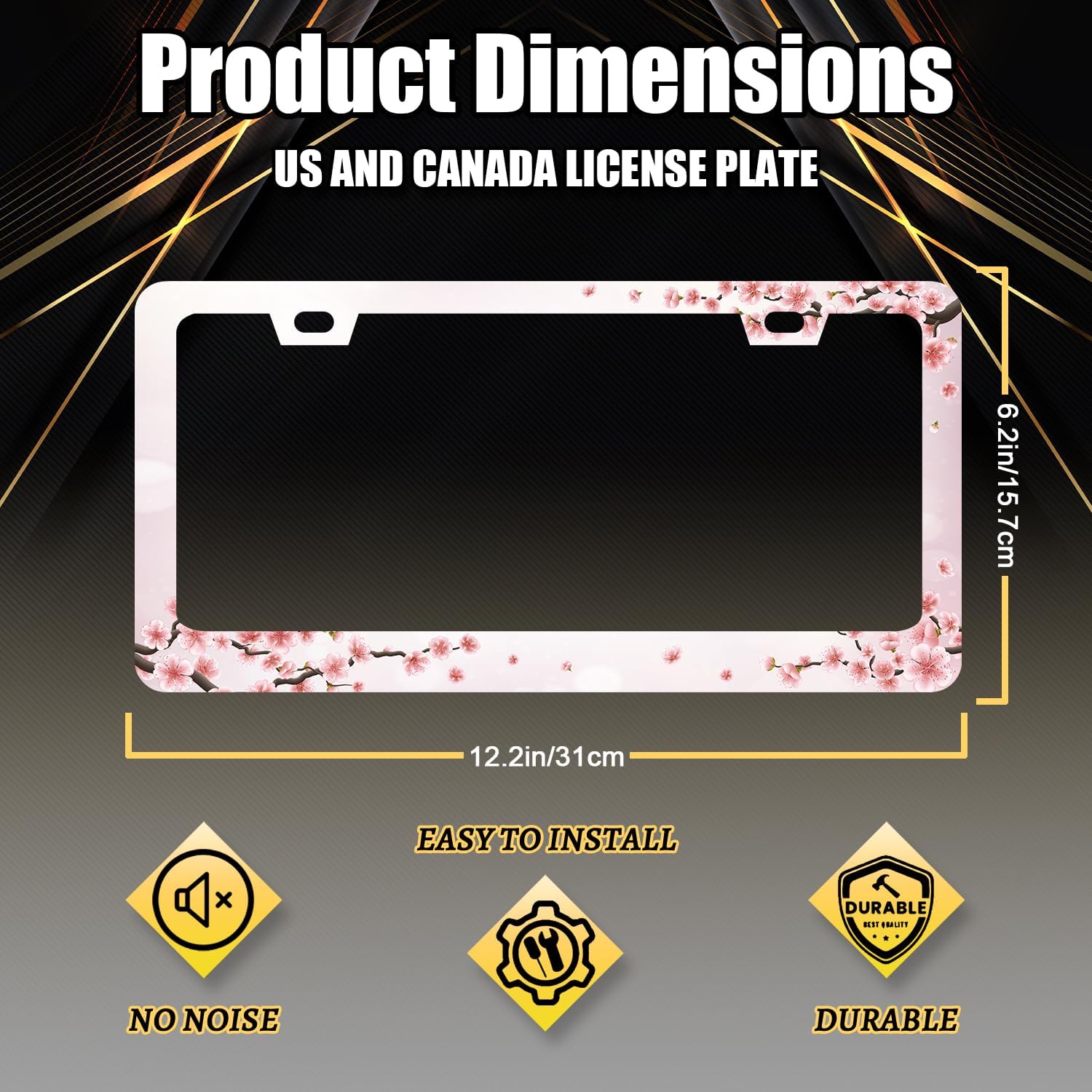 Cherry Blossom License Plate Frame Floral Pink Flowers License Plate Holder Stainless Steel Colorful Design Compatible with Standard License Plate for USA Canada 12.3" x 6.3" with 2 Screws