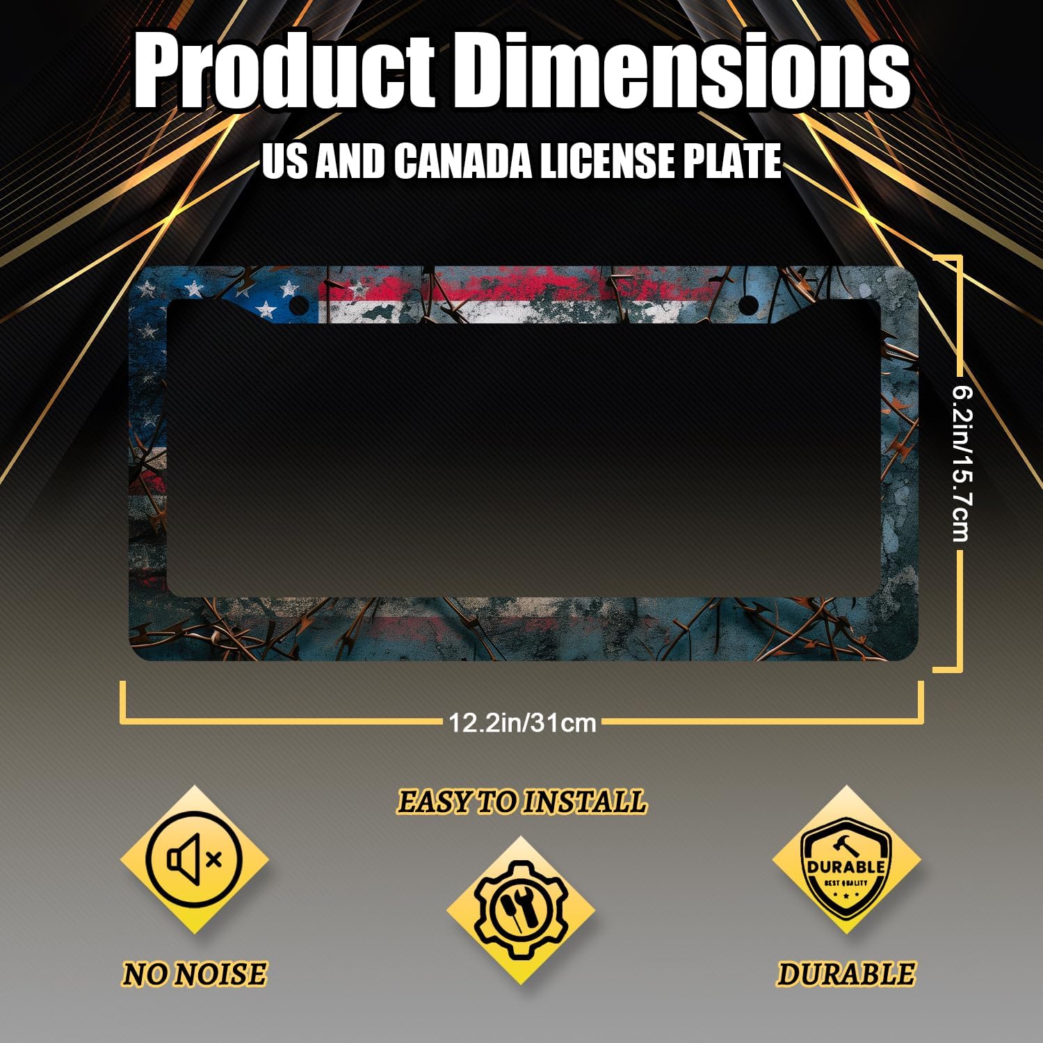 - Size: The size of the license plate frame is 12.3" x 6.3" , it fits all standard size US and Canada vehicle license plates.Fashion design frame fits perfectly on your car license plate.