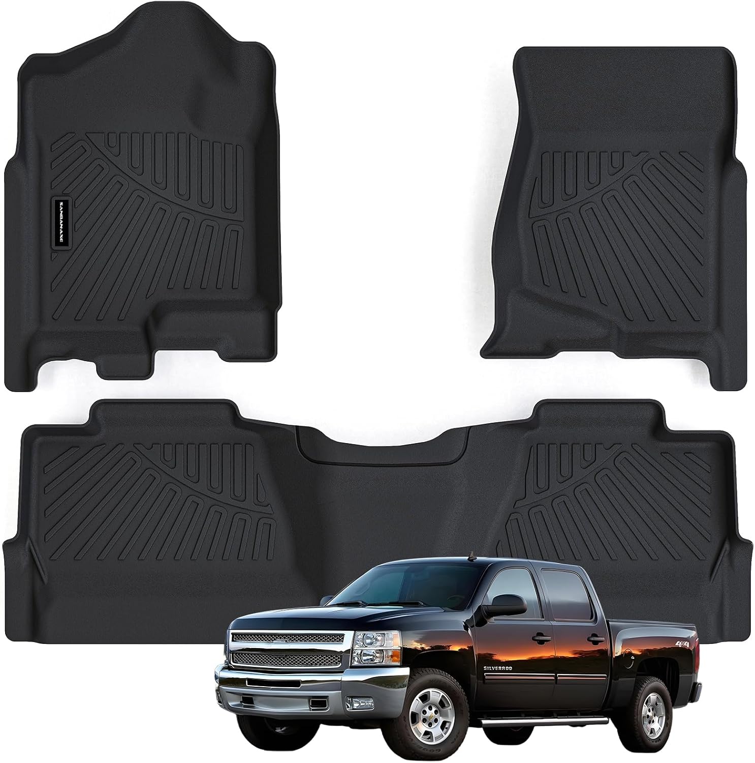 Floor Mats for 2007-2013 Chevy Silverado & GMC Sierra 1500 Crew Cab 2007-2014 2500/3500 HD TPE All Weather Full Cover Protection,Front & 2nd Row