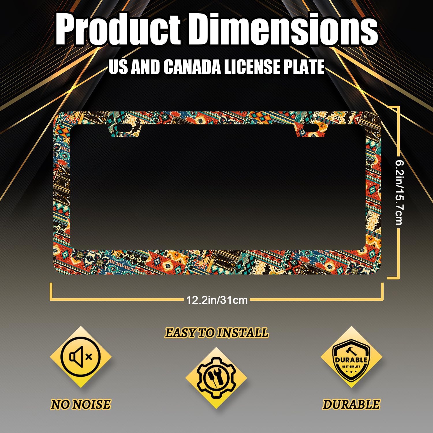 Ethnic Tribal Texture License Plate Frame Boho License Plate Holder Stainless Steel Funny Colorful Car Accessories Decoration 6.3" X 12.3" with 2 Holes Screws