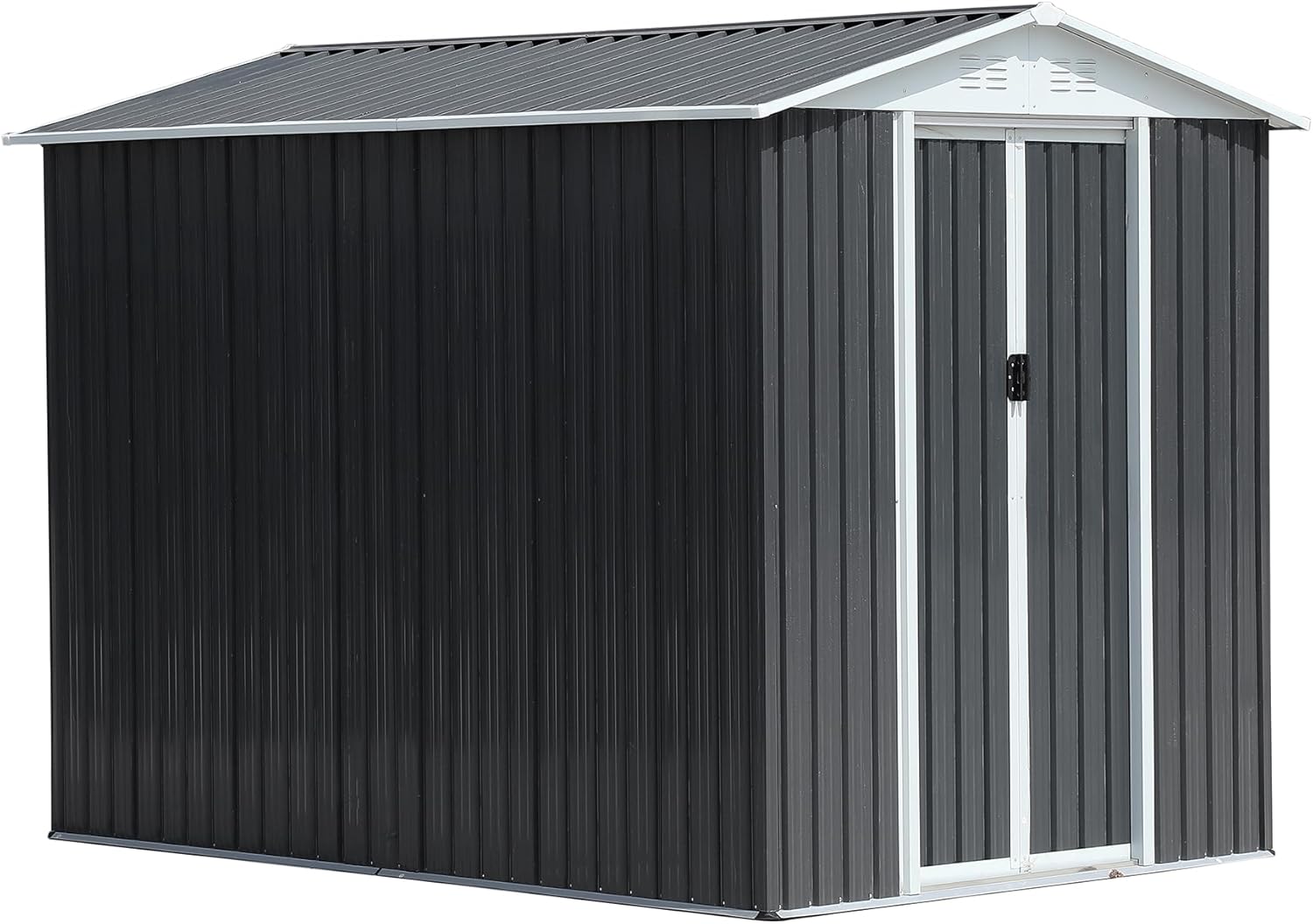 - ๐ก๐๐ฅ๐ฅ-๐ฐ๐๐๐ญ๐ก๐๐ซ ๐๐ญ๐จ๐ซ๐๐ ๐ ๐๐ก๐๐: Our metal shed 6x9 features smooth, lockable sliding doors with handles for easy opening and closing. It serves not only as a safe space for storing garden tools but also as a warm pet house. The sloped roof of the storage building effectively prevents leaks and snow accumulation, while the four integrated punched vents improve airflow, helping to keep your items dry
