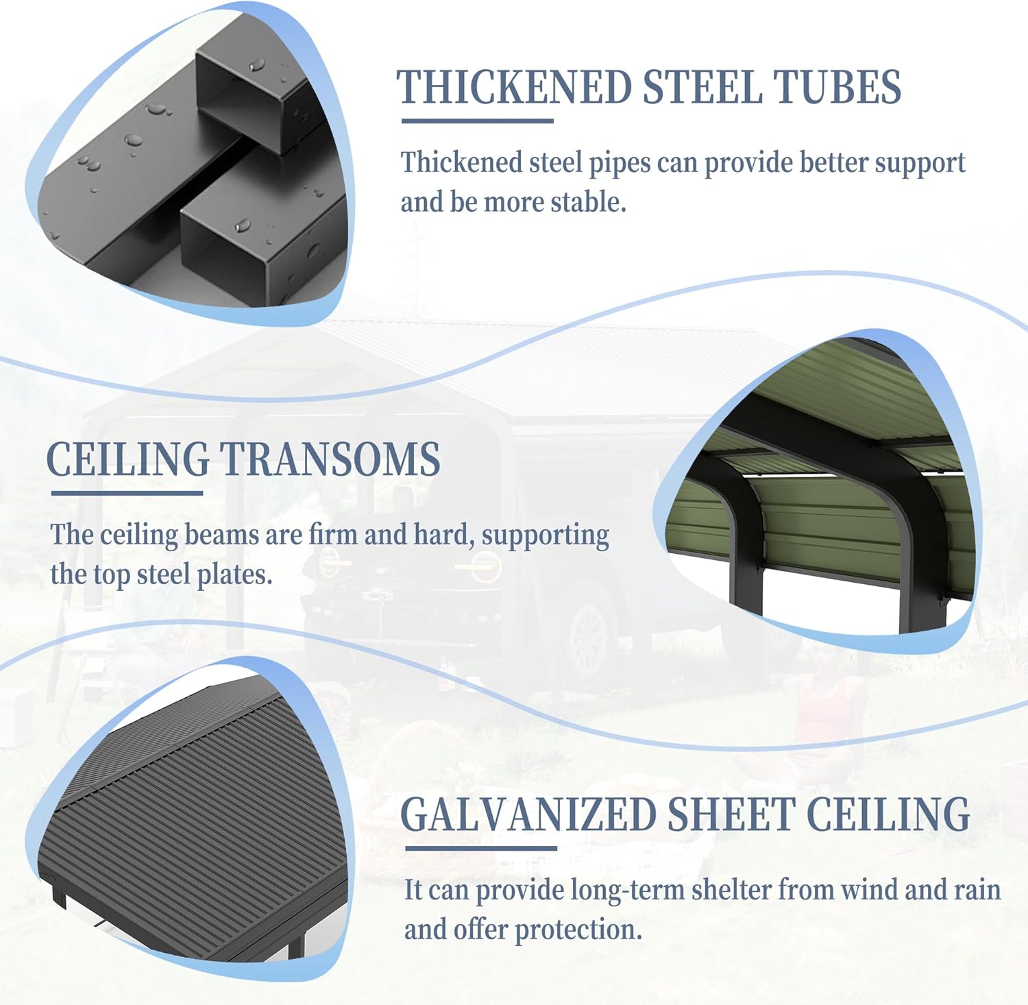 - โ ๐๐ฅ๐ฅโ๐๐๐๐ญ๐ก๐๐ซ ๐๐๐ซ๐ฉ๐จ๐ซ๐ญ: Sized at 12 ร 20 ft, this metal carport provides year-round protection for your car, boat, and outdoor gear against wind, rain, and snow. Protruding eaves combined with rainproof tape seal out leaks during heavy downpours. Say goodbye to parking headaches under reliable, all-season heavy duty car ports.