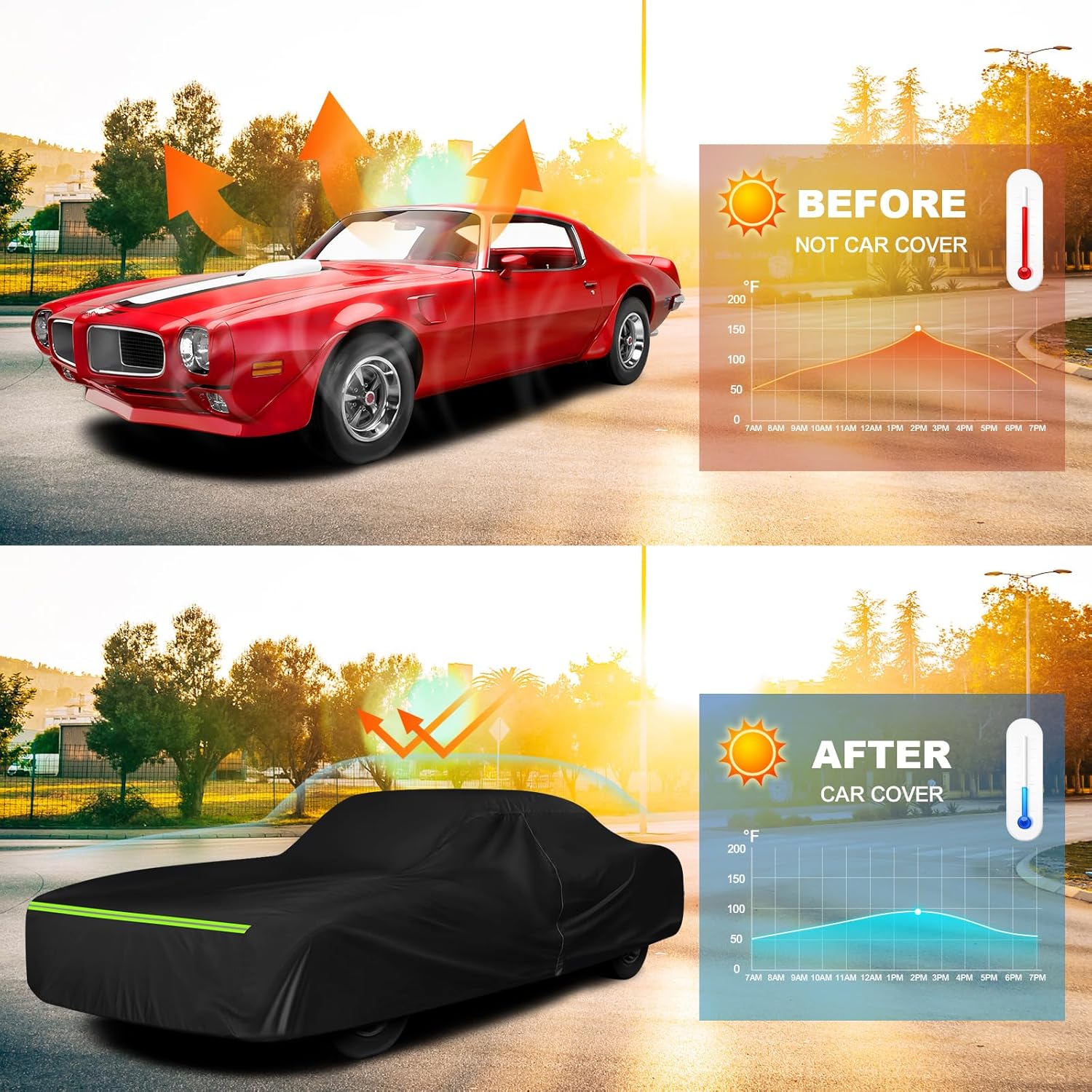 QUNSUNUS Waterproof Car Cover for Pontiac Firebird 1967-1992, Outdoor Car Covers with Zipper, All Weather Cover with Straps and Elastic Edges for Wind, Sun, UV and Dust Protection