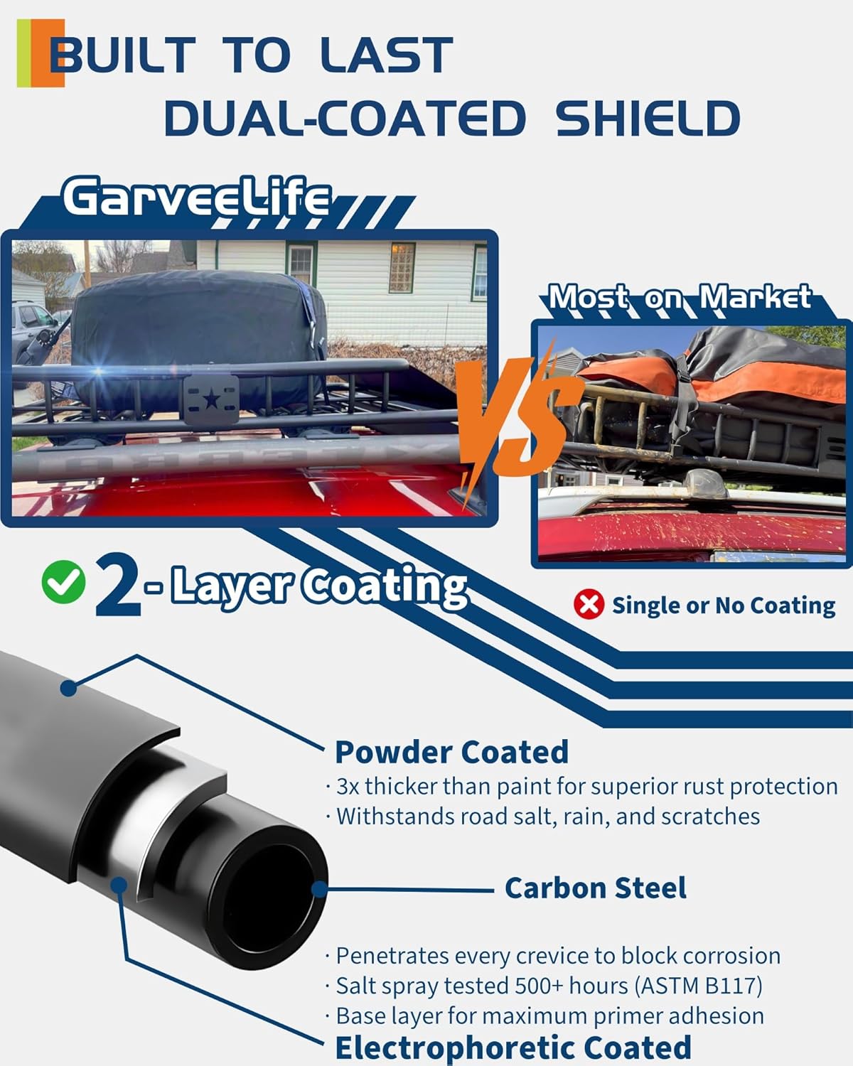 - ăBUILT TO LASTăThe GarveeLife Universal Roof Rack Basket integrates powder-coated steel and electrophoretic technology to resist rust, corrosion, and extreme weather. Engineered for heavy-duty performance, it safeguards cargo during cross-country trips, camping, or long-term outdoor storageâbuilt tough to outlast every adventure
