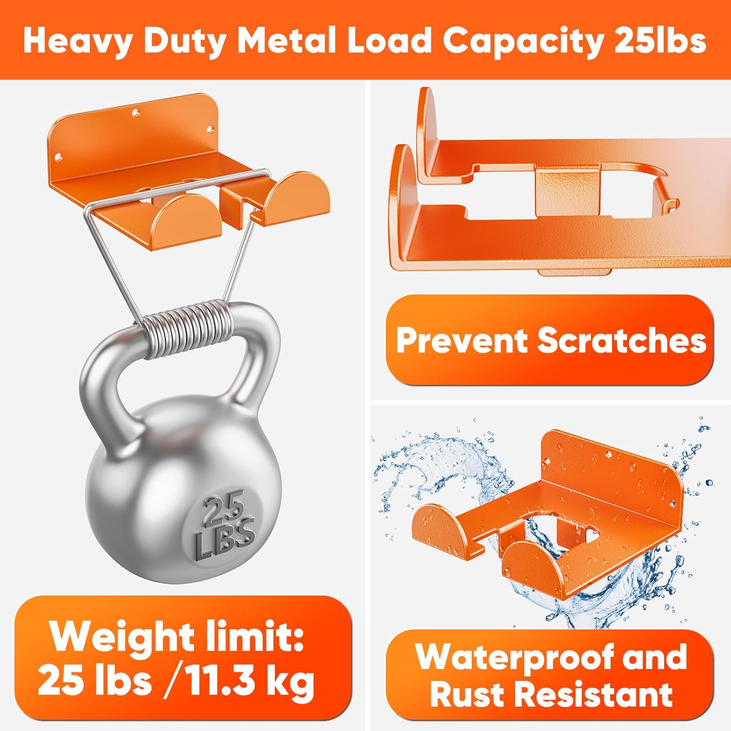 - High-Quality Heavy Metal Material: Our weedeater hanger is constructed from thick, high-quality heavy metal, ensuring it is both sturdy and durable. It can support weights of up to 25 lbs without deformation. The surface is coated with orange paint for added protection, making it waterproof, rust-proof, and crack-resistant. Additionally, the smooth edge design prevents injury to your hands or tools. The robust construction guarantees that your power tools remain securely in place, preventing accidental damage or falls.