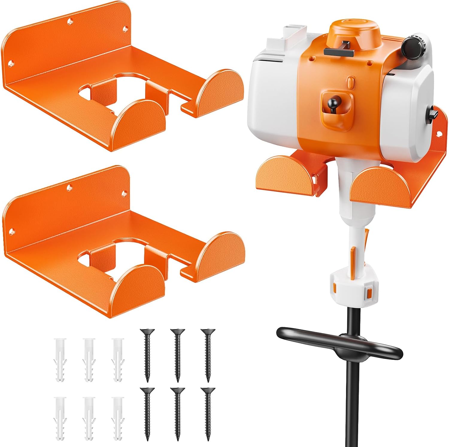 - Product Includes: The package include 2 string trimmer hanger, 6 screws, and 6 expansion tubes. This ensures that the pruning wall hanging has a good grip, balance, and capacity, making it firmer and stable. Before purchasing, please measure your tool to ensure it is compatible with our weedeater hanger.