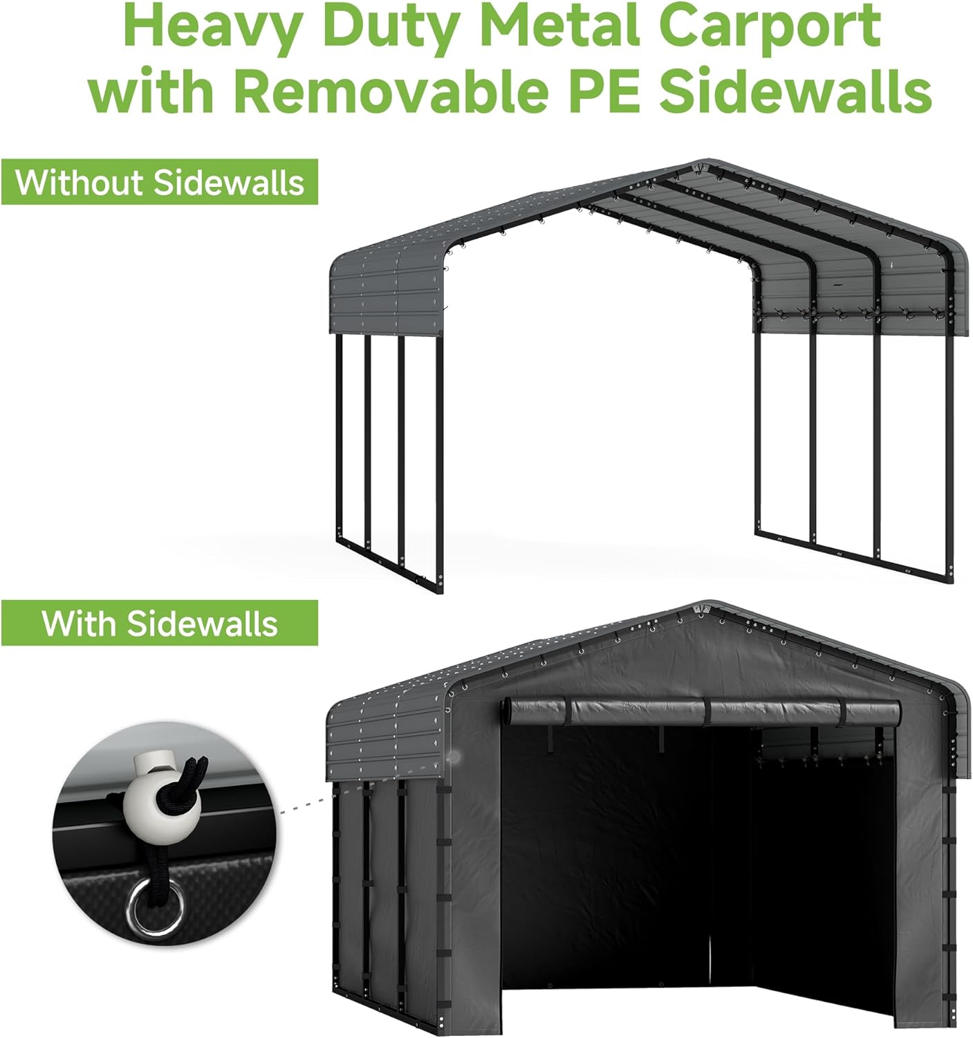 Real Relax 10x15ft Heavy Duty Metal Carport with Galvanized Steel Roof, Removable Sidewalls, Outdoor Car Port Shelter for Cars, Trucks and Boats, Gray