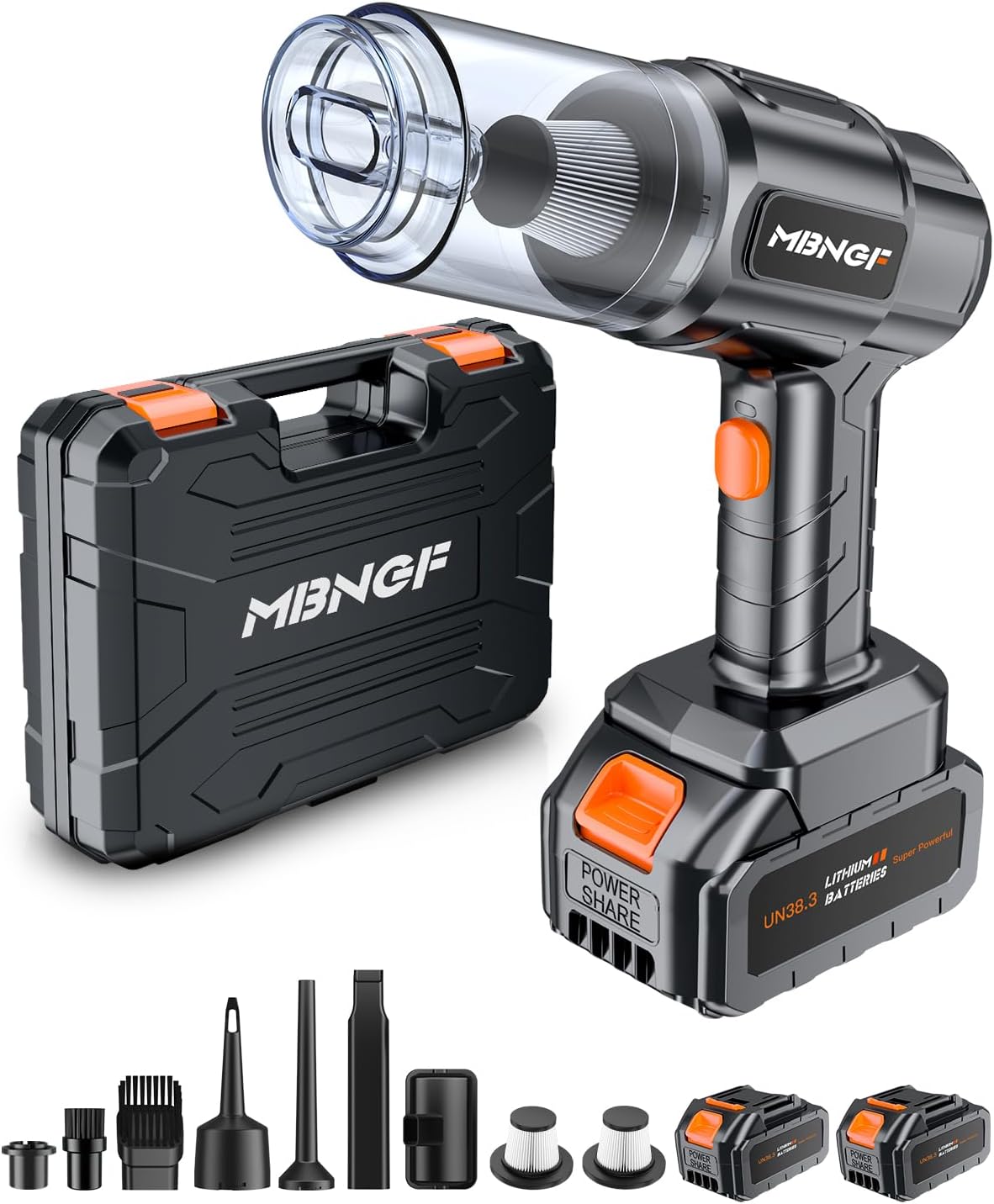 - ăPortable and Cordless Designă Say goodbye to tangled cords and heavy devices. The portable and cordless design of the MBNGF X9 ULTRA car vacuum makes it easy to maneuver and use anywhere.
