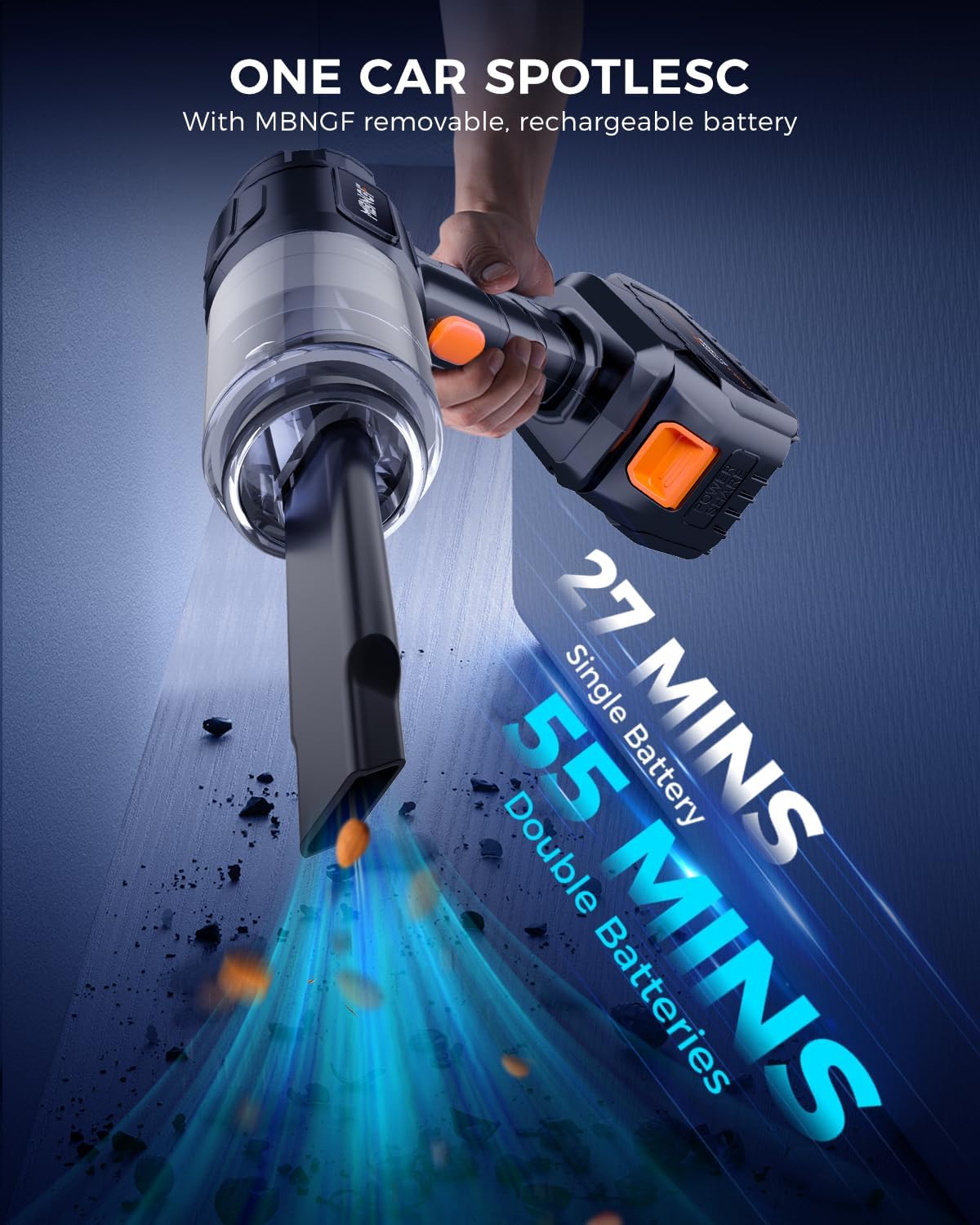 - ăLong-lasting Battery Lifeă Equipped with a high-capacity battery, the MBNGF X9 ULTRA provides extended use time. Enjoy up to 60 minutes of powerful cleaning on a single charge, ensuring you can clean your entire car
