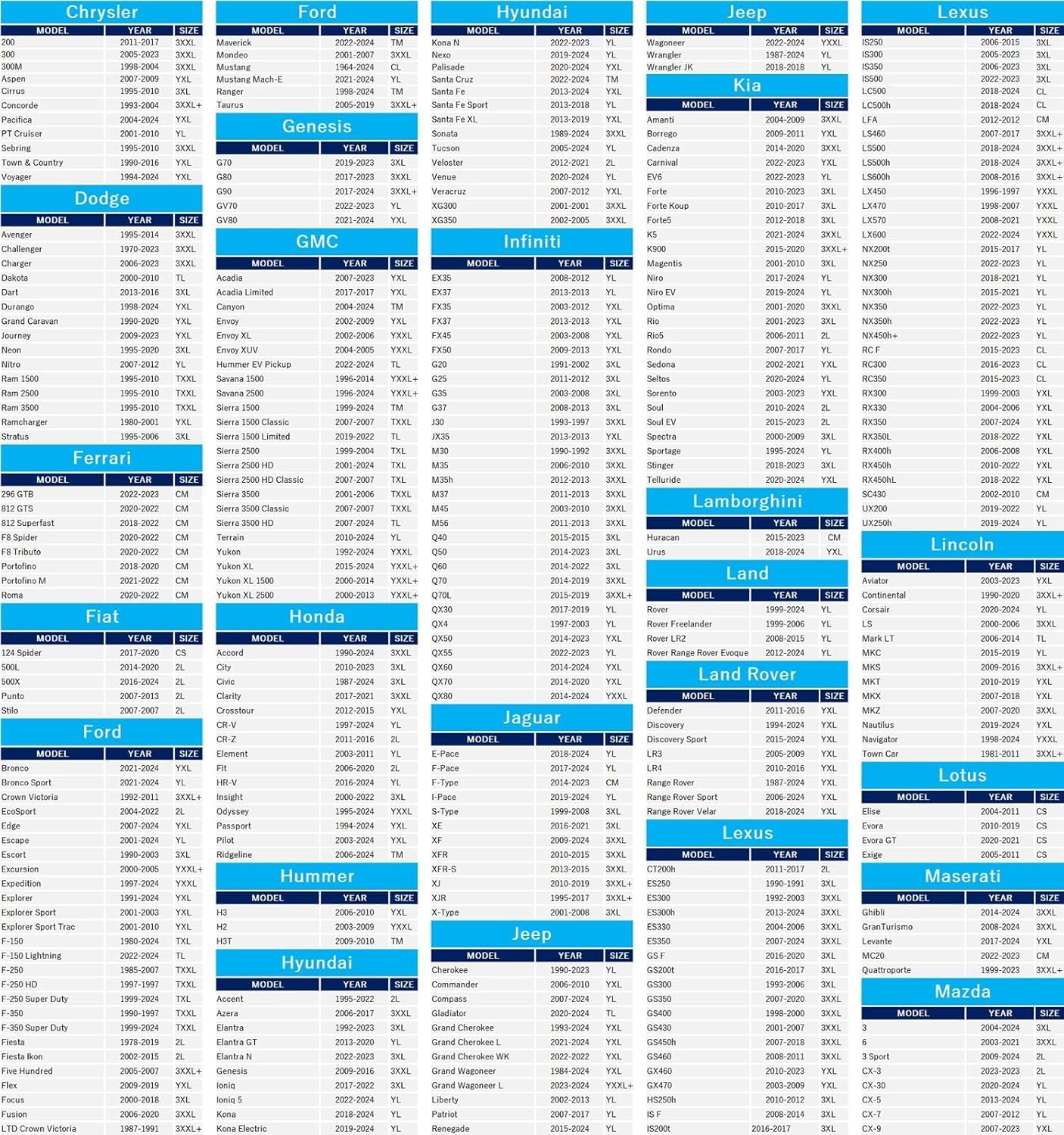 - Universal Fitment: Our YL universal car cover is fit for SUV which length is 170 to 190 inches. Compatible with Toyota CHR/RAV4, Jeep Cherokee/Wrangler, Audi Q3/Q5, BMW, Buick Encore, Chevrolet, Dodge, Ford Mustang, Honda CRV, Hyundai Elantra, Kia Sportage, GMC, Land Rover, Lincoln, Rogue, Mitsubishi, Porsche, Subaru, Lexus, Cadillac, Genesis, Jaguar, etc.
